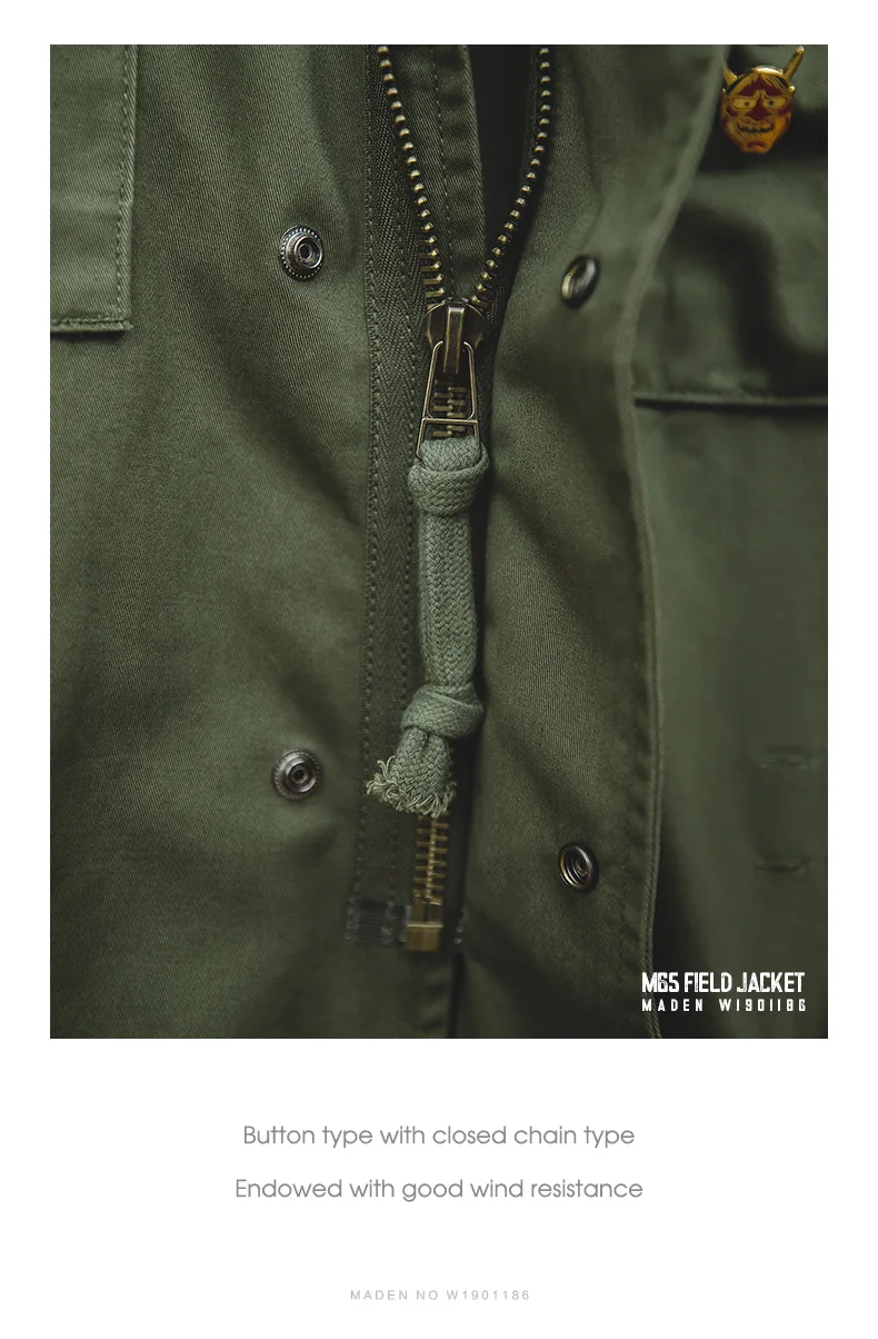 Maden Military M65 Field Jackets For Men's Green Vintage Army Jacket Casual Windbreaker Solid Lapel Collar with Pockets Overcoat