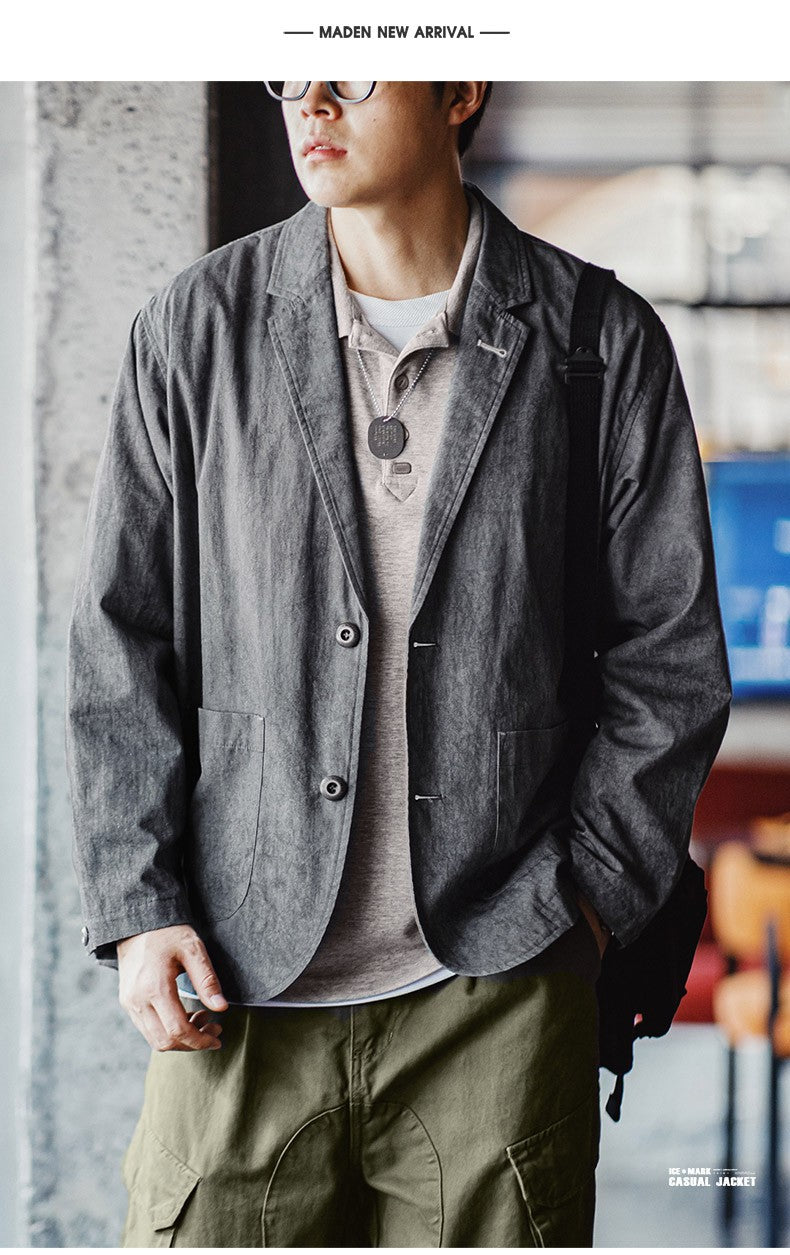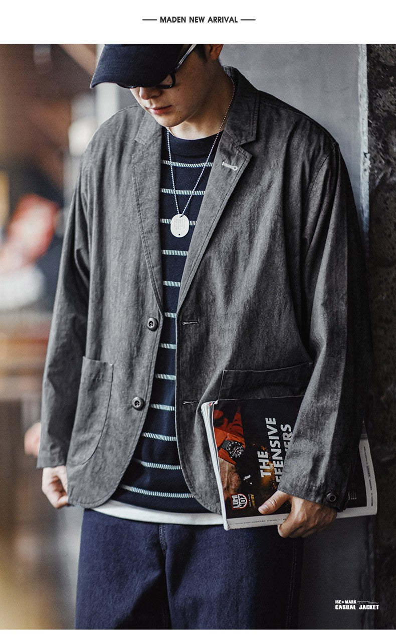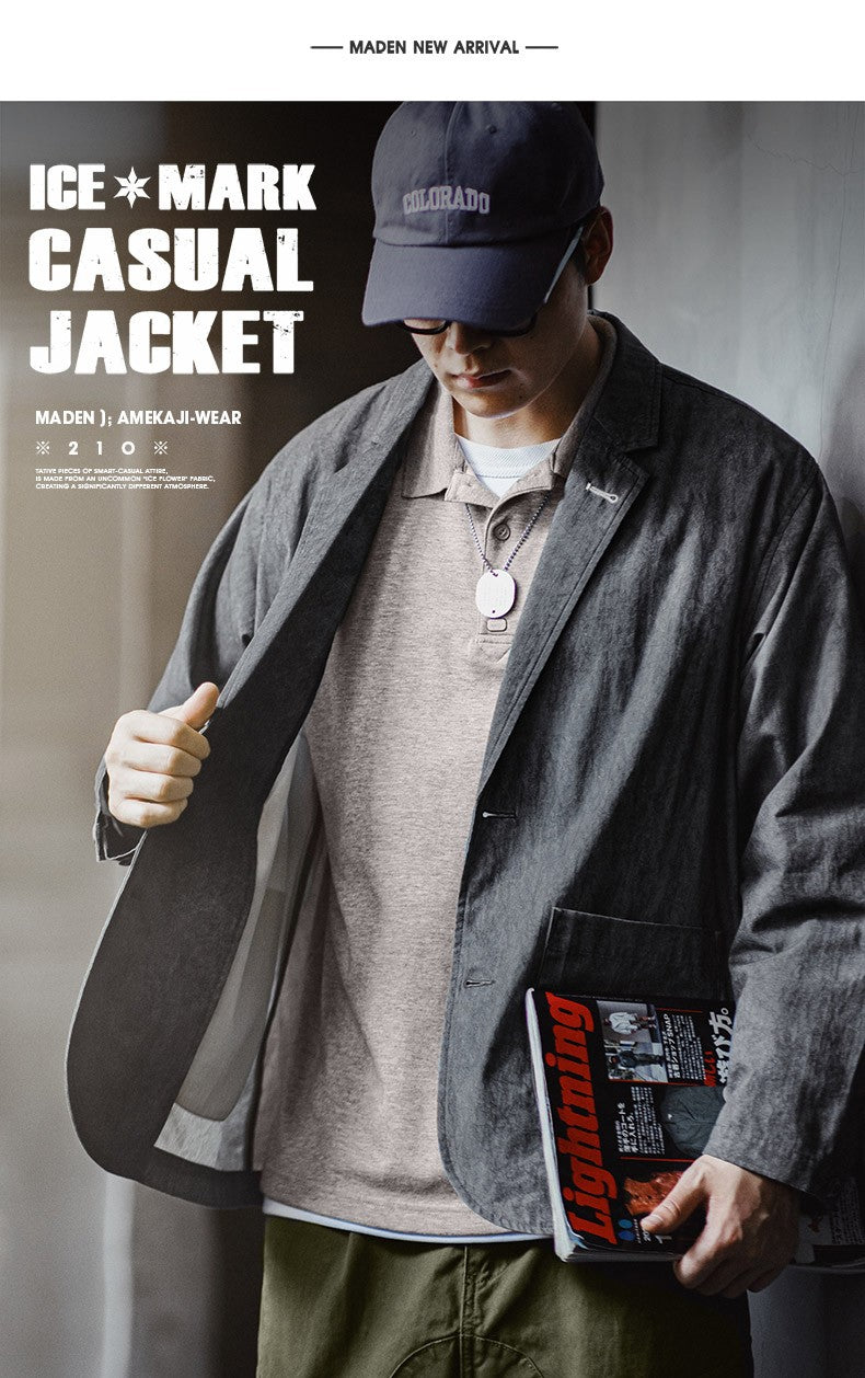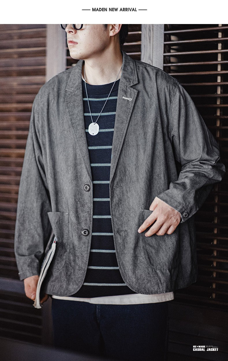Maden New Casual Suit with Irregular Pattern Design Lapel Loose Blazers Cotton Jacket for Men's Spring and Autumn