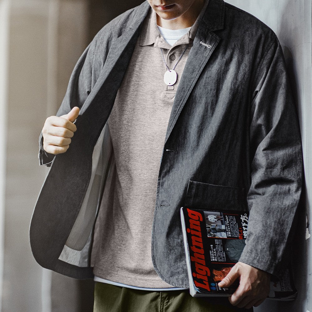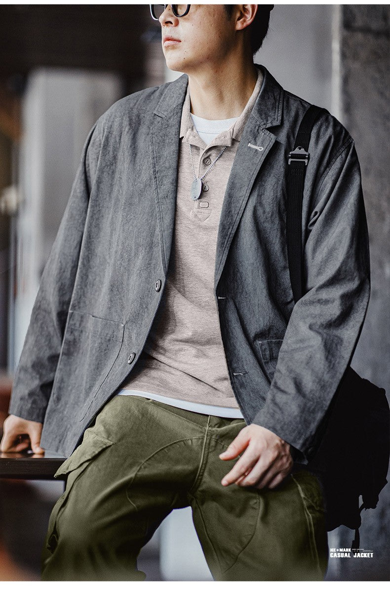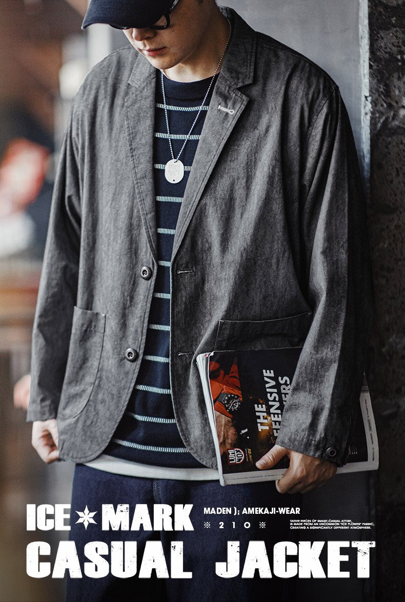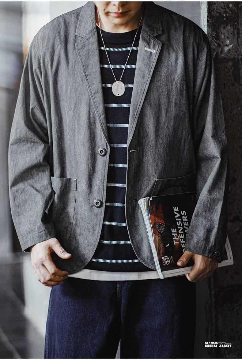 Maden New Casual Suit with Irregular Pattern Design Lapel Loose Blazers Cotton Jacket for Men's Spring and Autumn