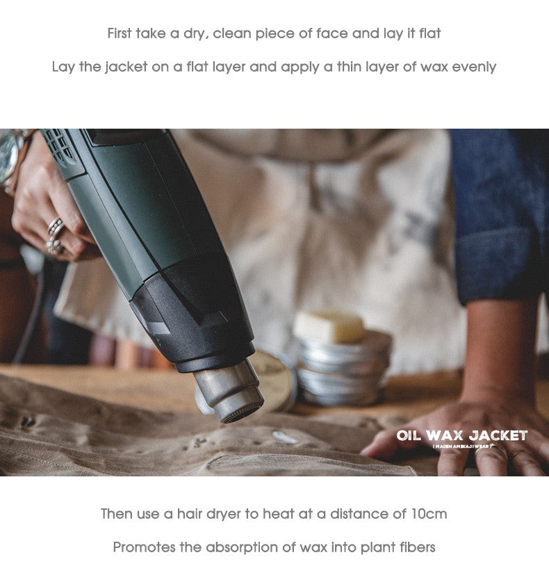 Lay the jacket on a flat layer and apply a thin layer of wax evenly