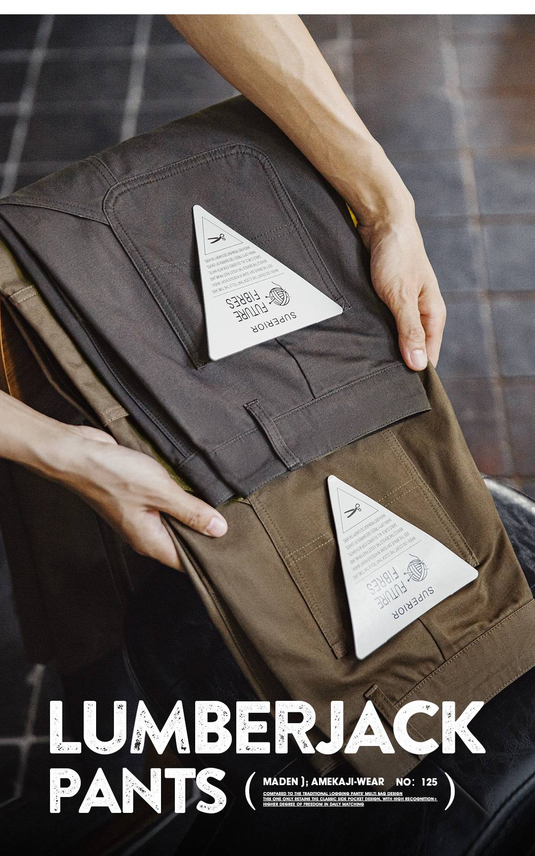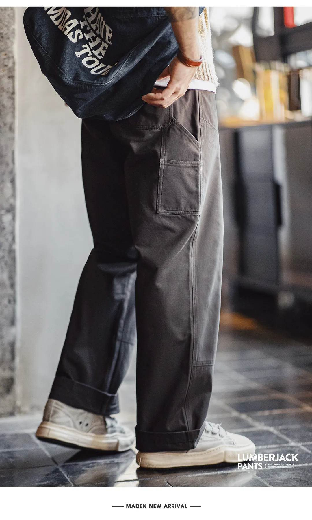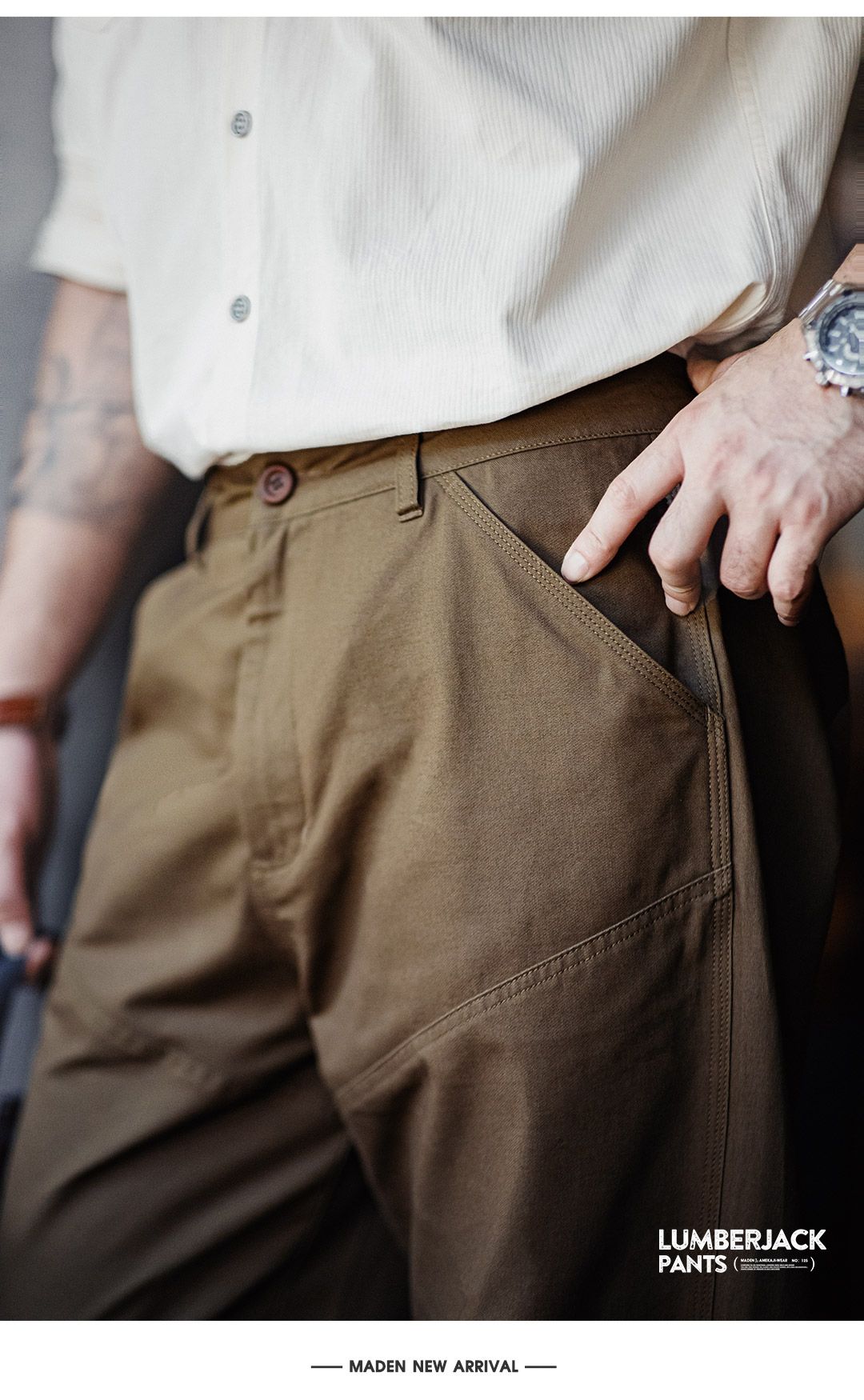Maden Vintage Solid Logging Pants Versatile Cotton Straight Casual Lumberjack Pants with Zipper Fly and Pockets Trousers for Men