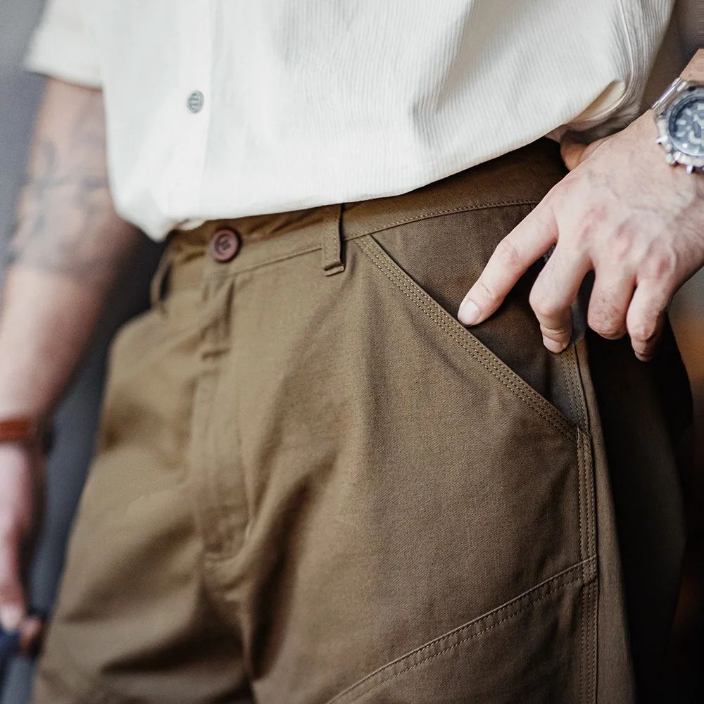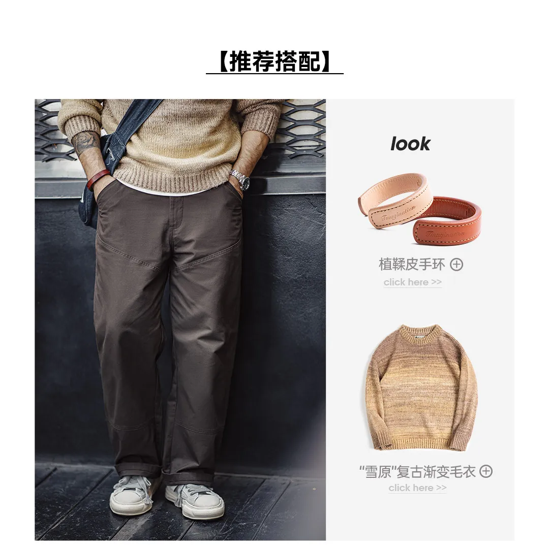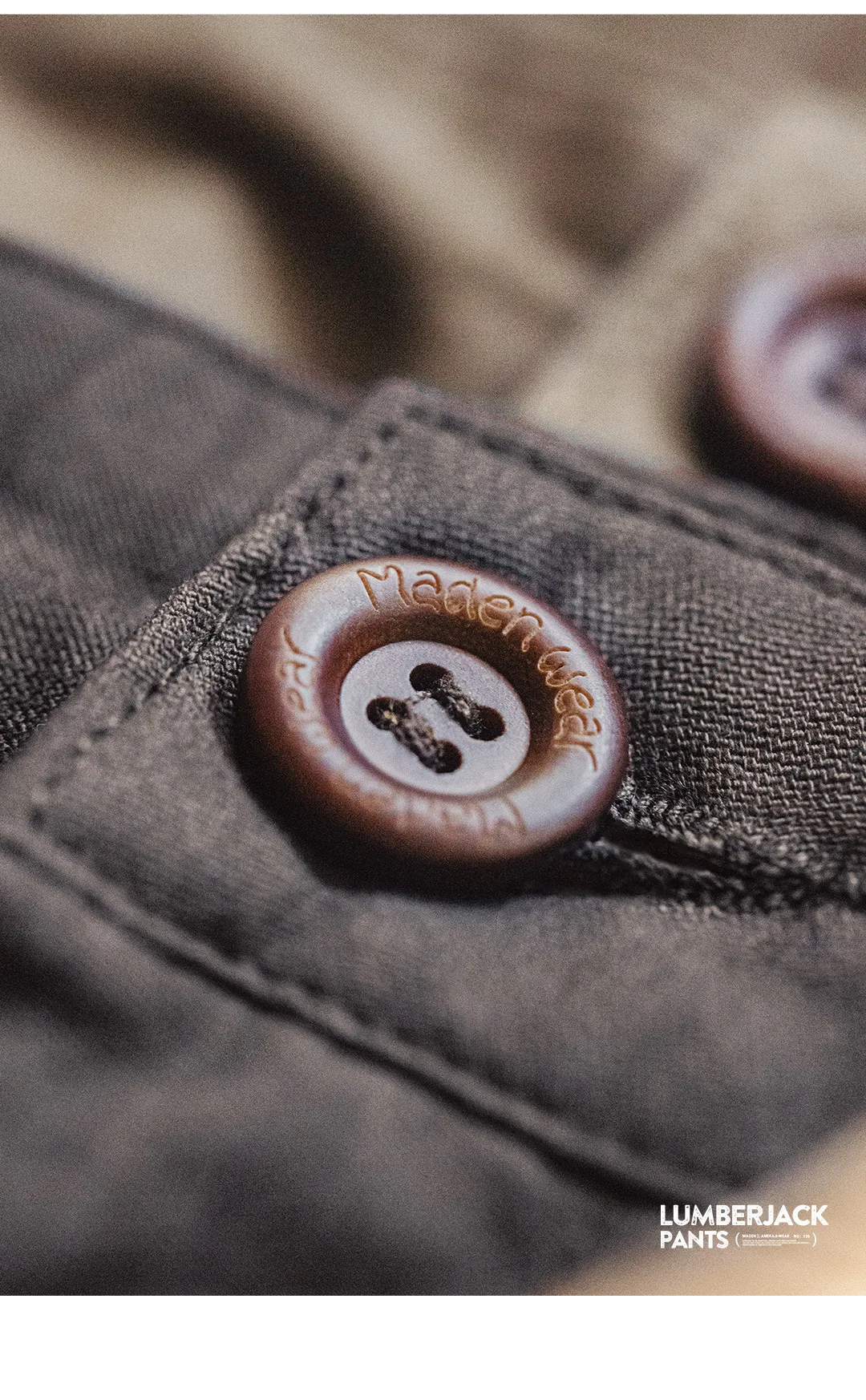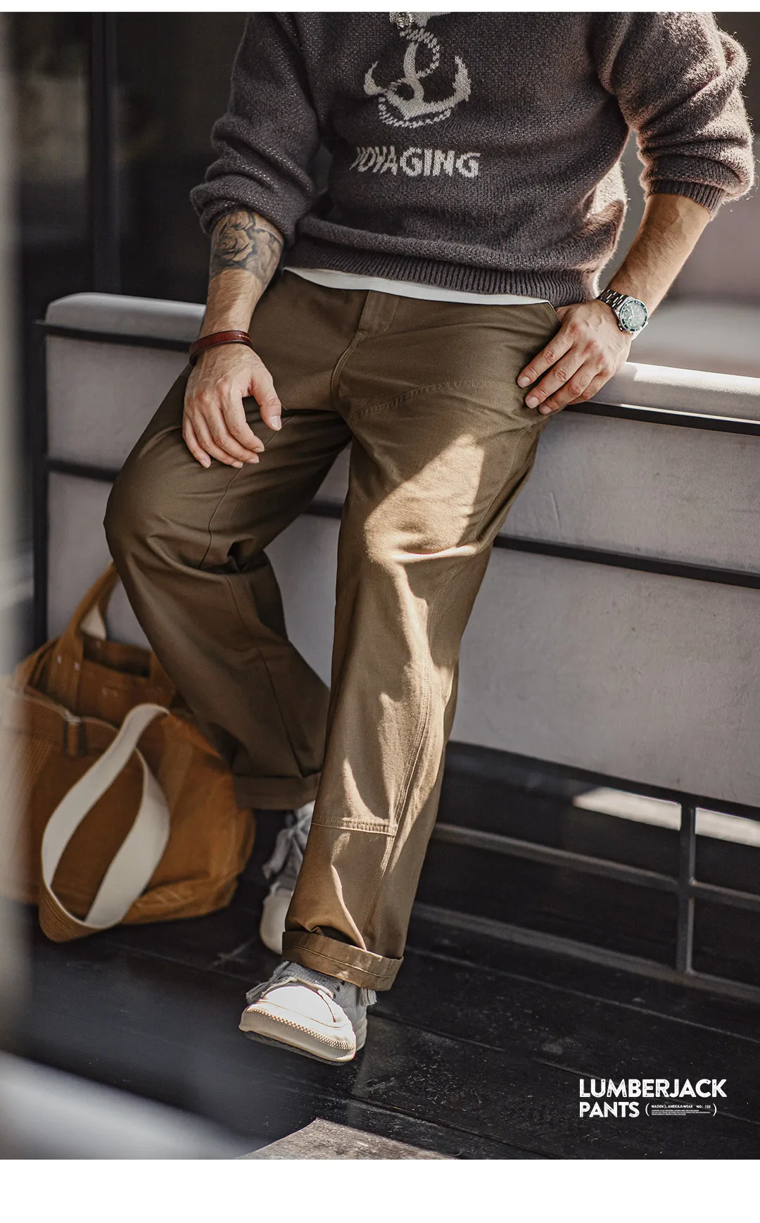 Maden Vintage Solid Logging Pants Versatile Cotton Straight Casual Lumberjack Pants with Zipper Fly and Pockets Trousers for Men