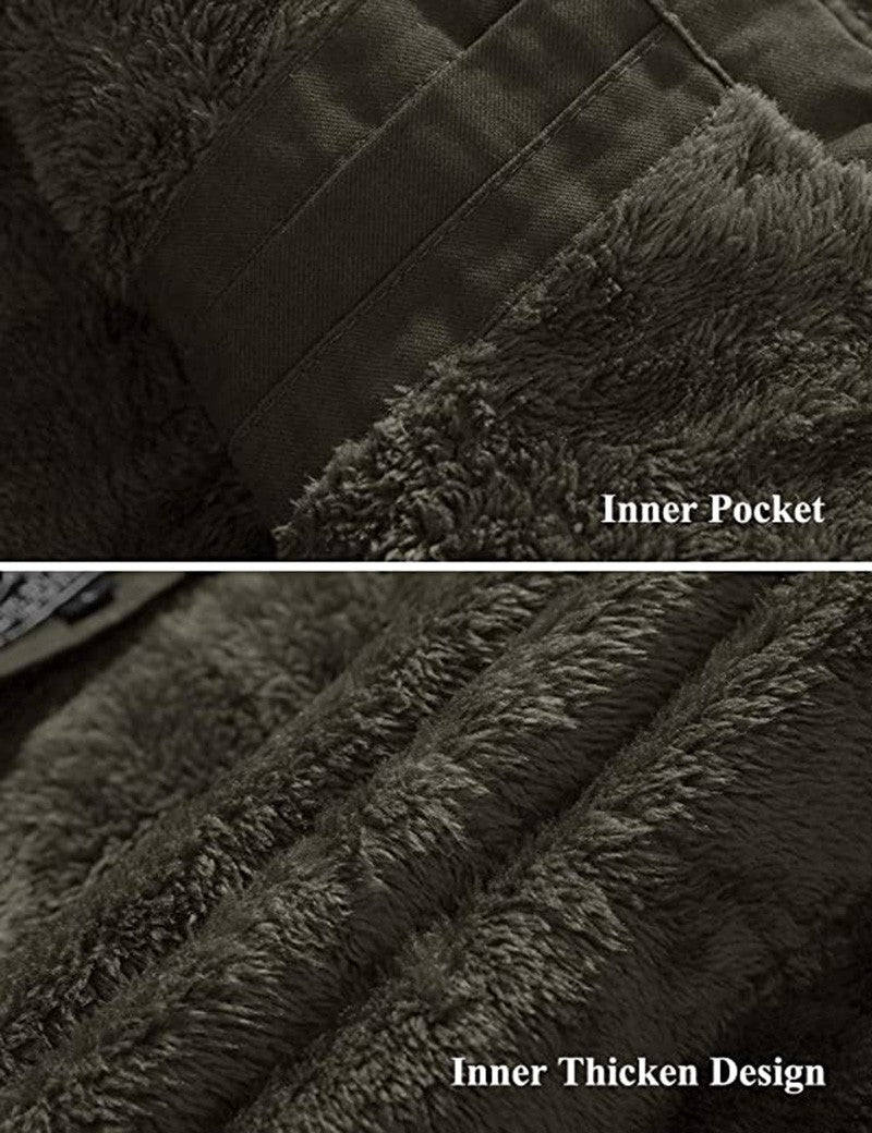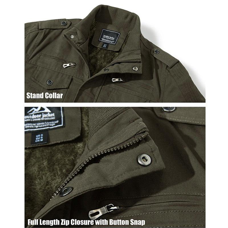 MAGCOMSEN Men's Fleece Jackets Windbreaker Coats Fall Winter Thermal Bomber Jackets Multi-pockets Stand Collar Motorcycle Jacket