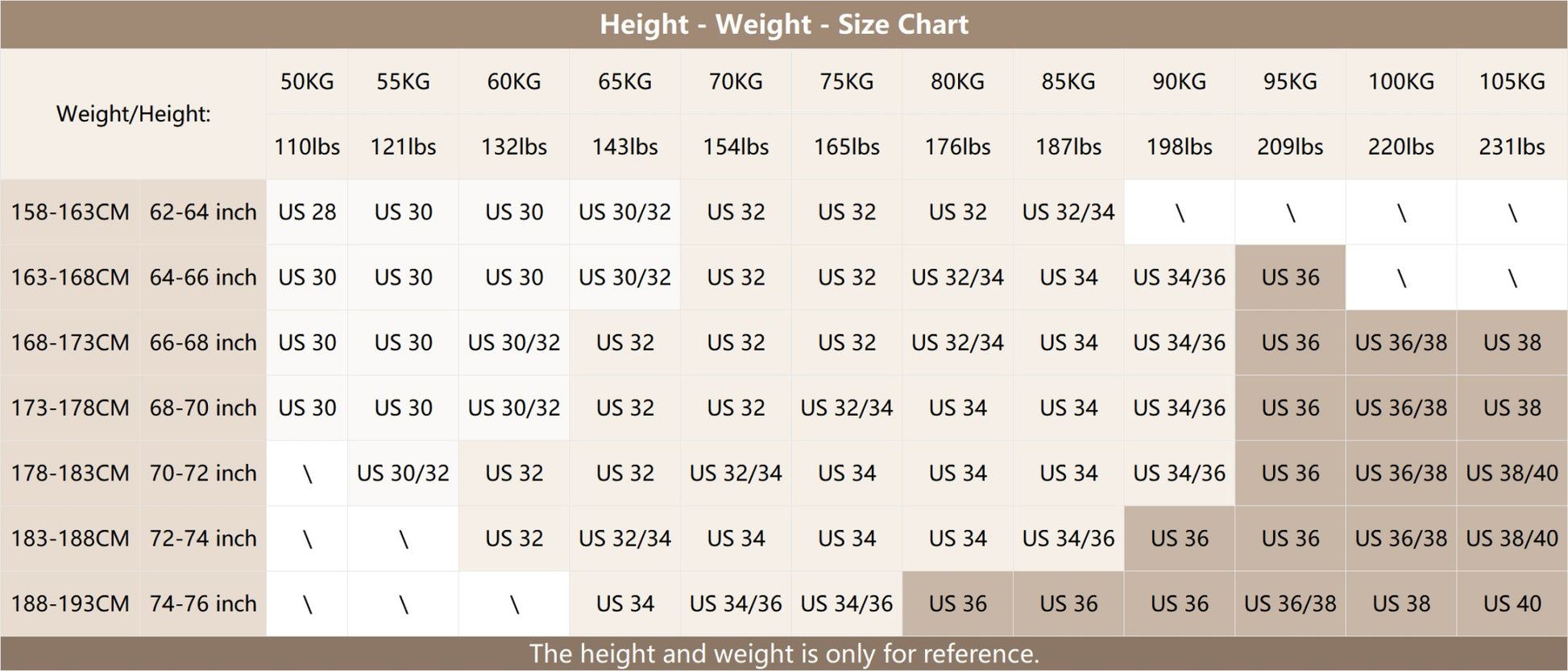 ● If you not idea to choose the size, please tell us your height and weight, we will recommend size for you (recommended size is just for reference only).