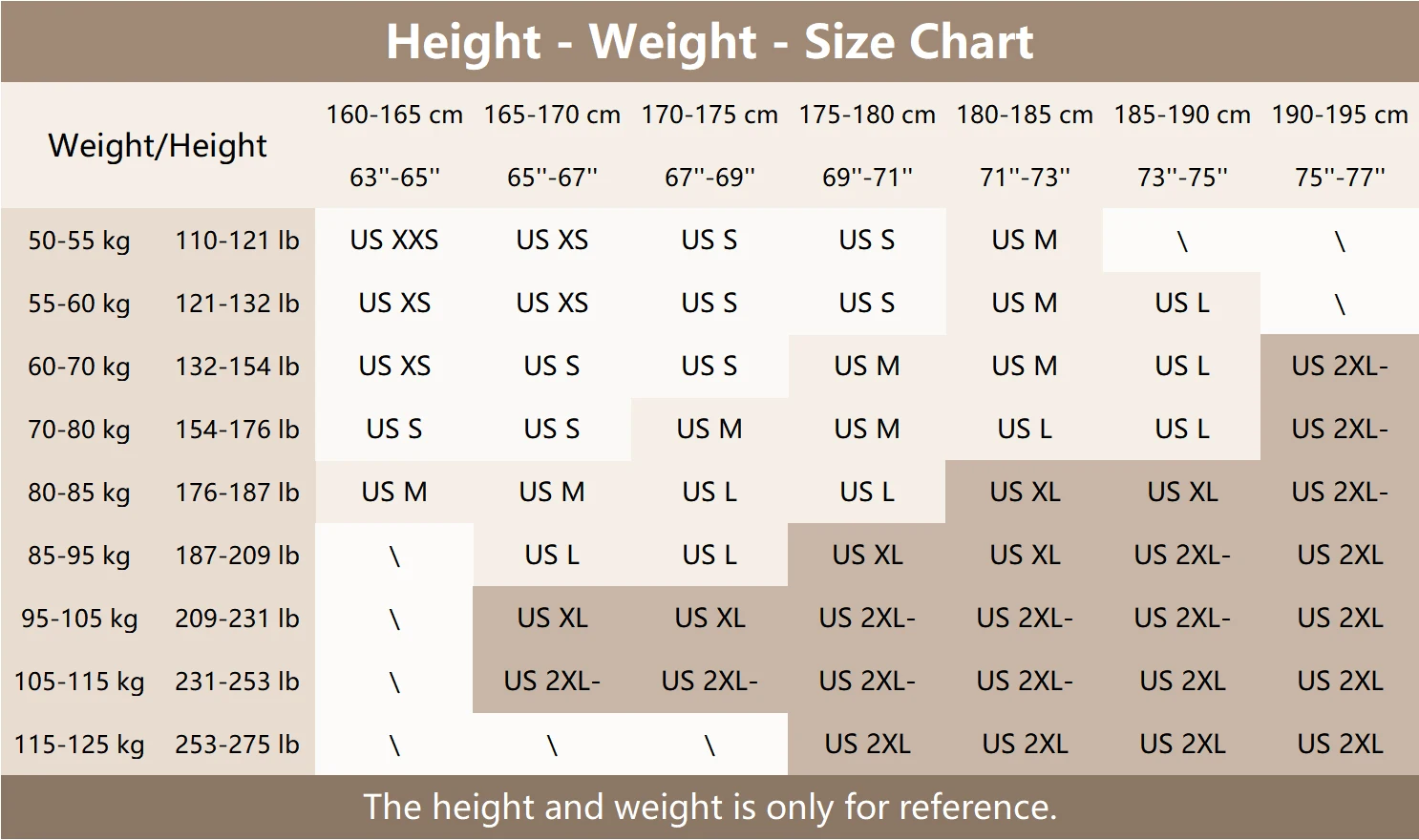 ● If you not idea to choose the size, please tell us your height and weight, we will recommend size for you (recommended size is just for reference only).