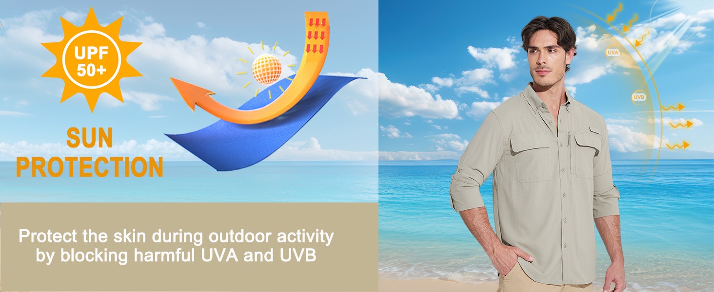 ● 【Sun Protection】Men's long sleeve UPF shirt is perfect for keeping the blistering sun off your skin and protect you from harmful UVA and UVB, offers all-day protection.
