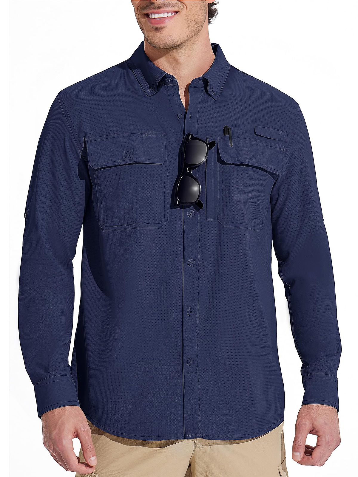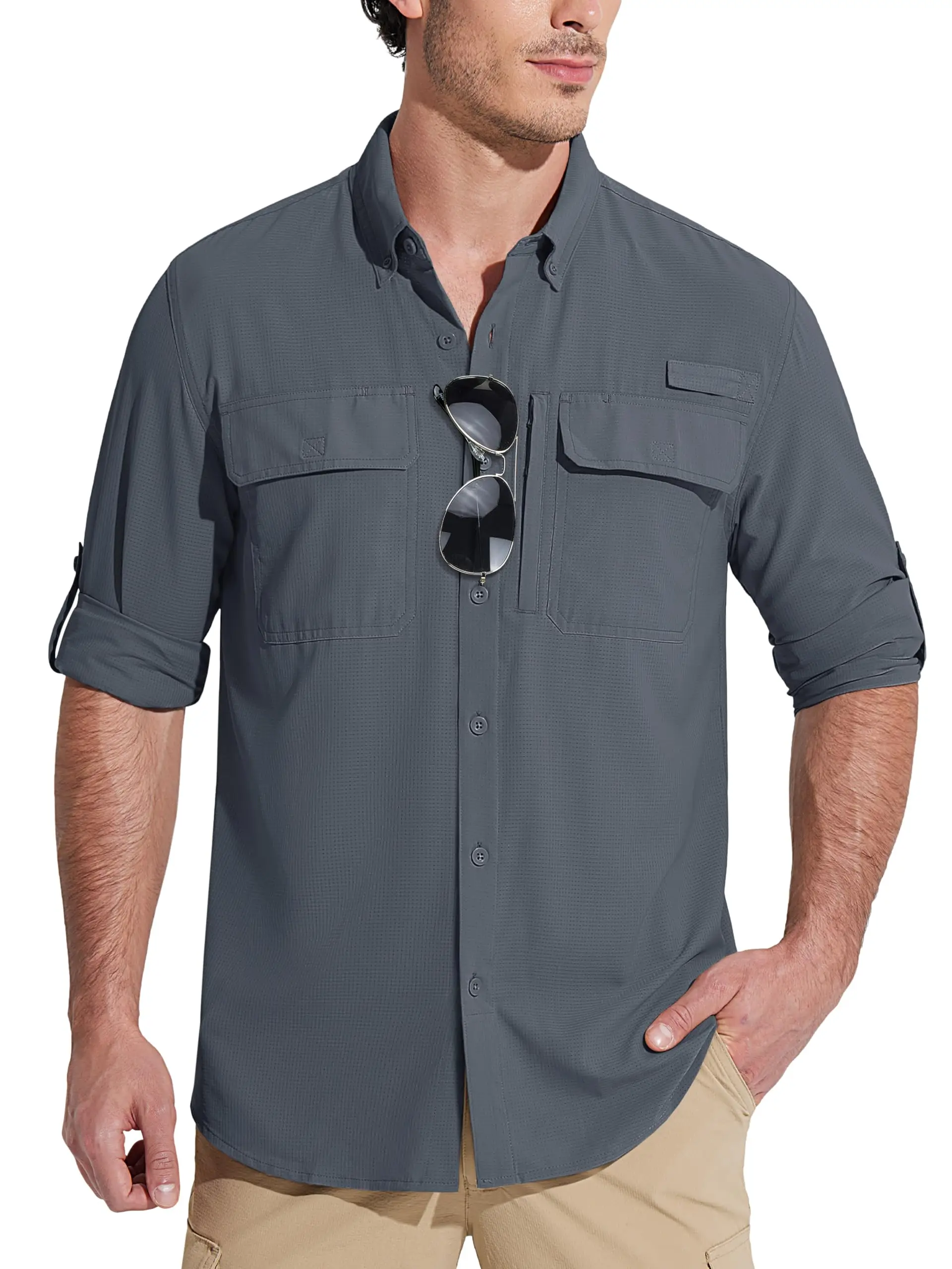 MAGCOMSEN Sun Protection Shirt Quick Dry Long Sleeve Mesh Breathable Shirt Multi Pockets Fishing Shirts Hiking Work Cargo Shirts