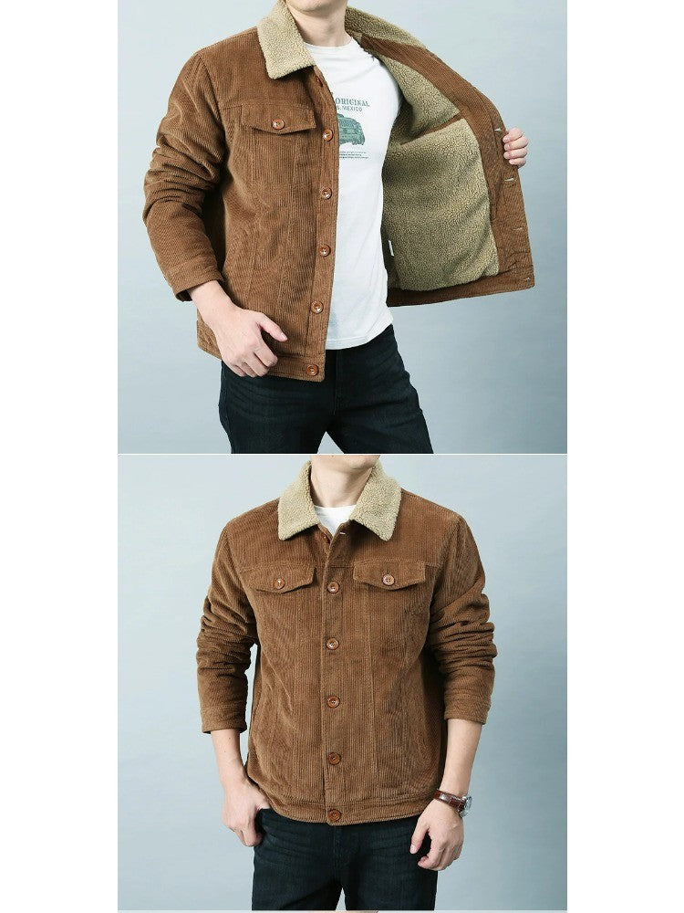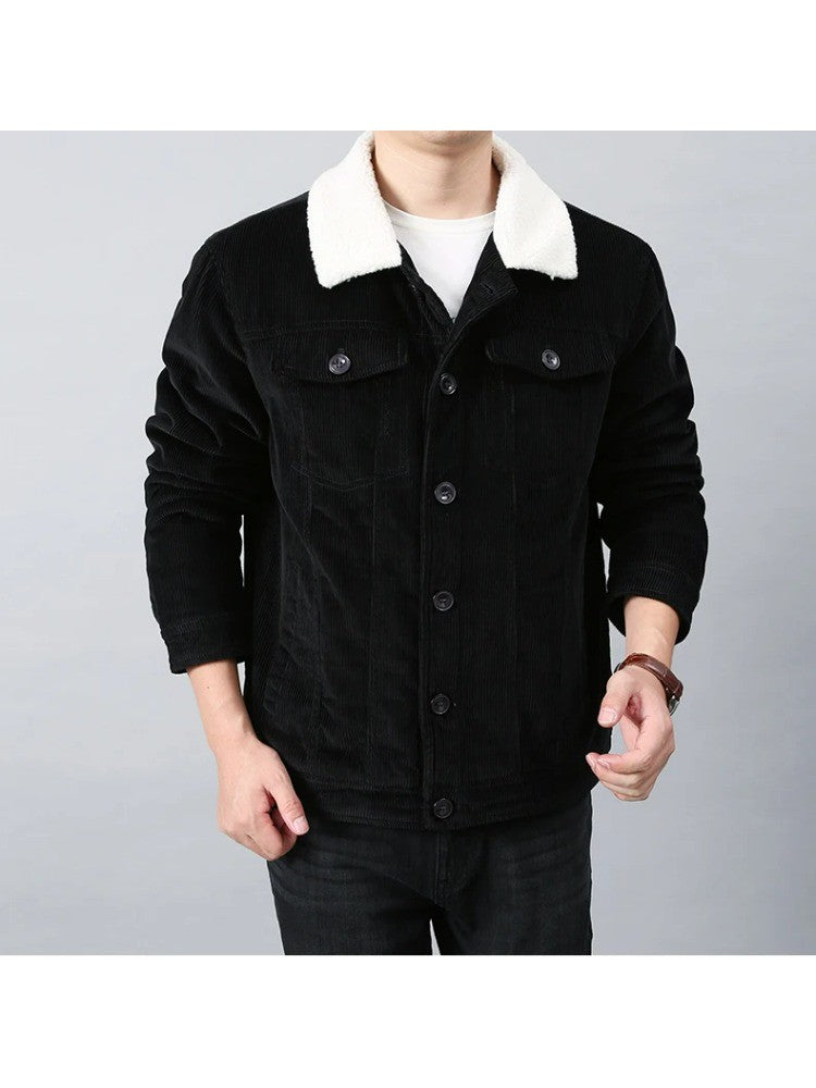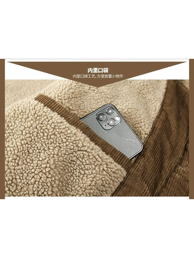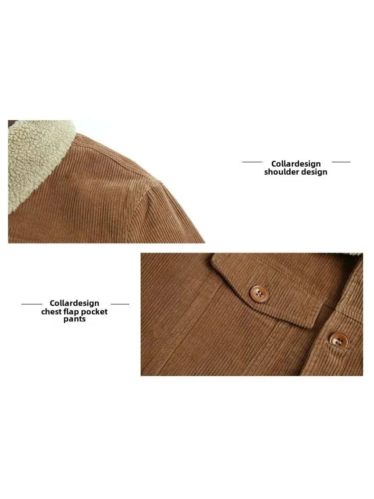 Male Cotton Jackets Padded Warm Loose Parka Coat Corduroy Short Jacket Man Solid Fur Collar Windbreaker Winter Men Fleece Jacket