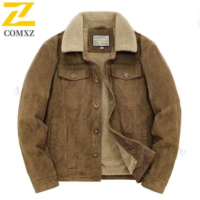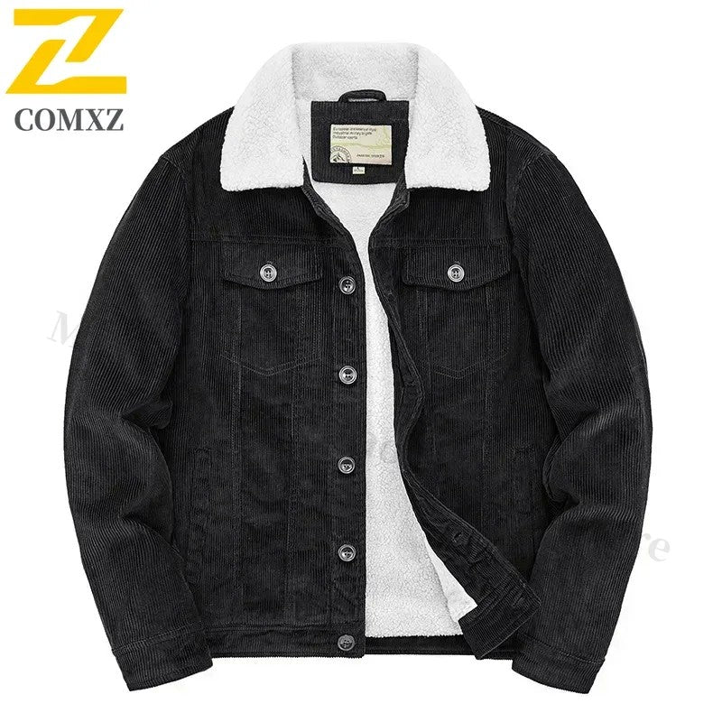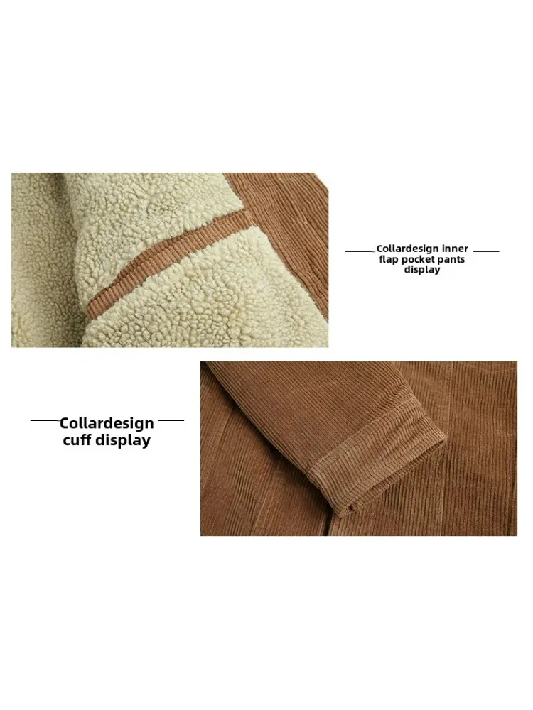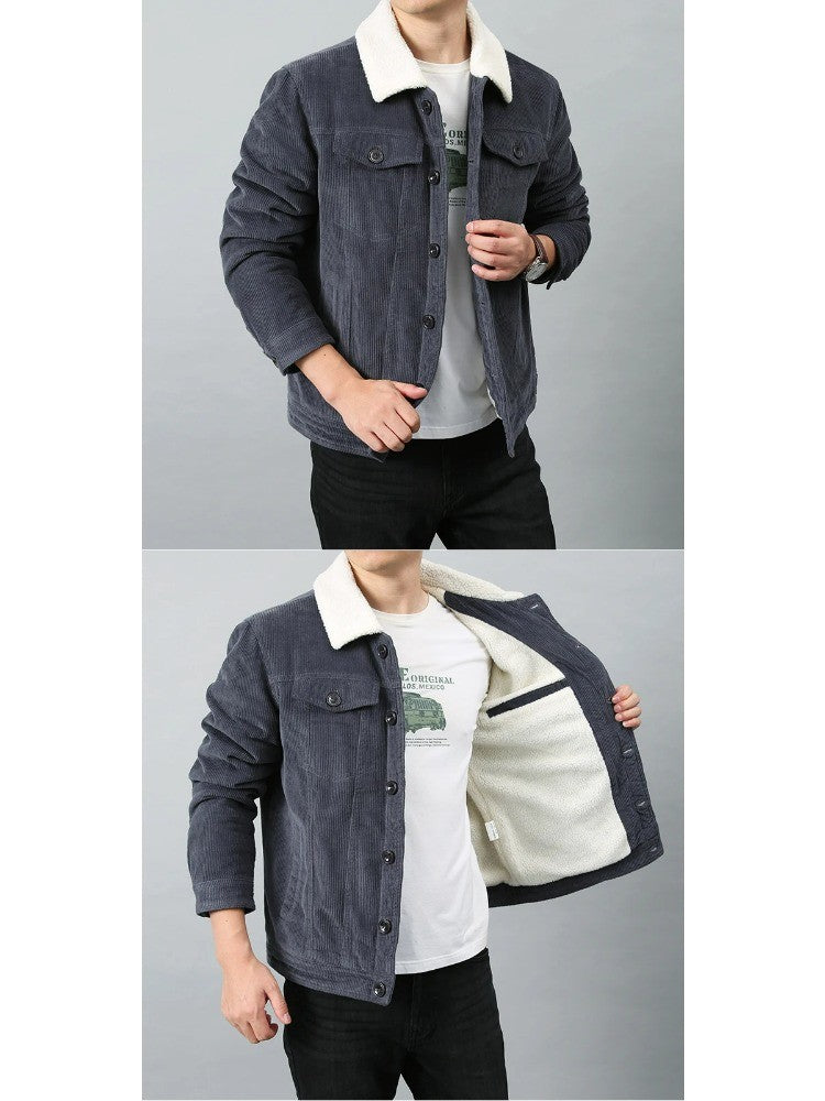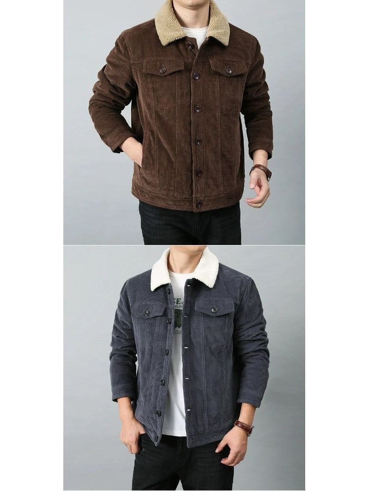 Male Cotton Jackets Padded Warm Loose Parka Coat Corduroy Short Jacket Man Solid Fur Collar Windbreaker Winter Men Fleece Jacket