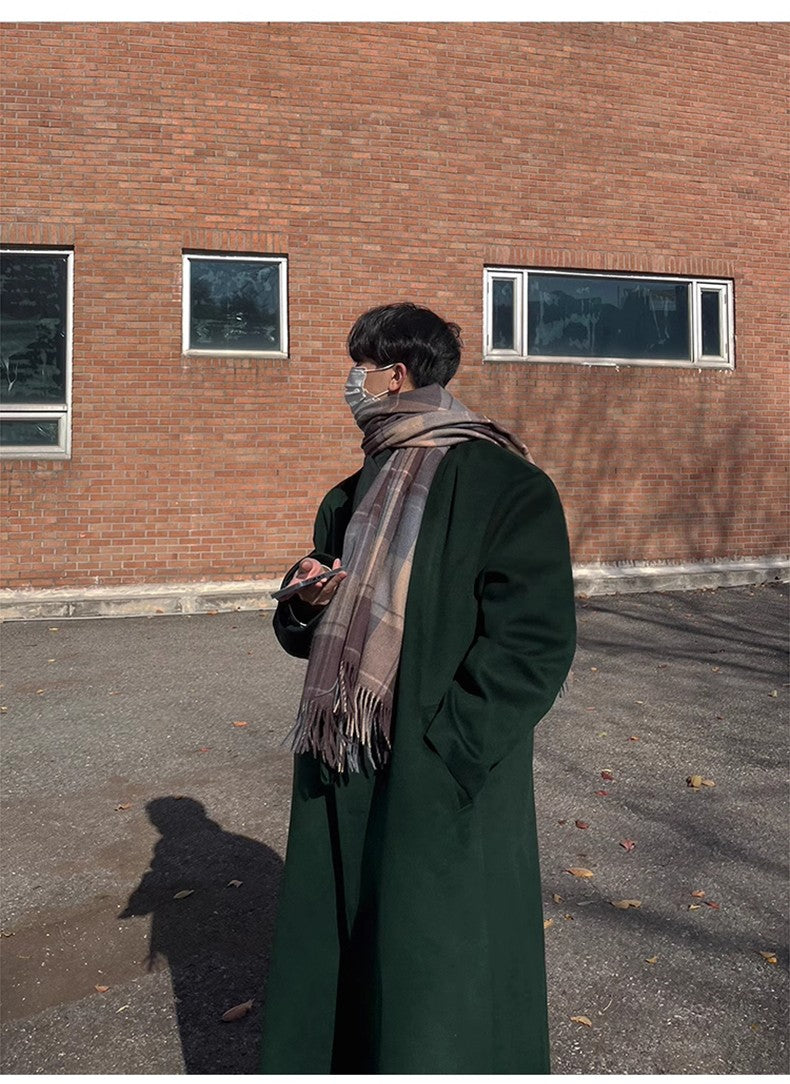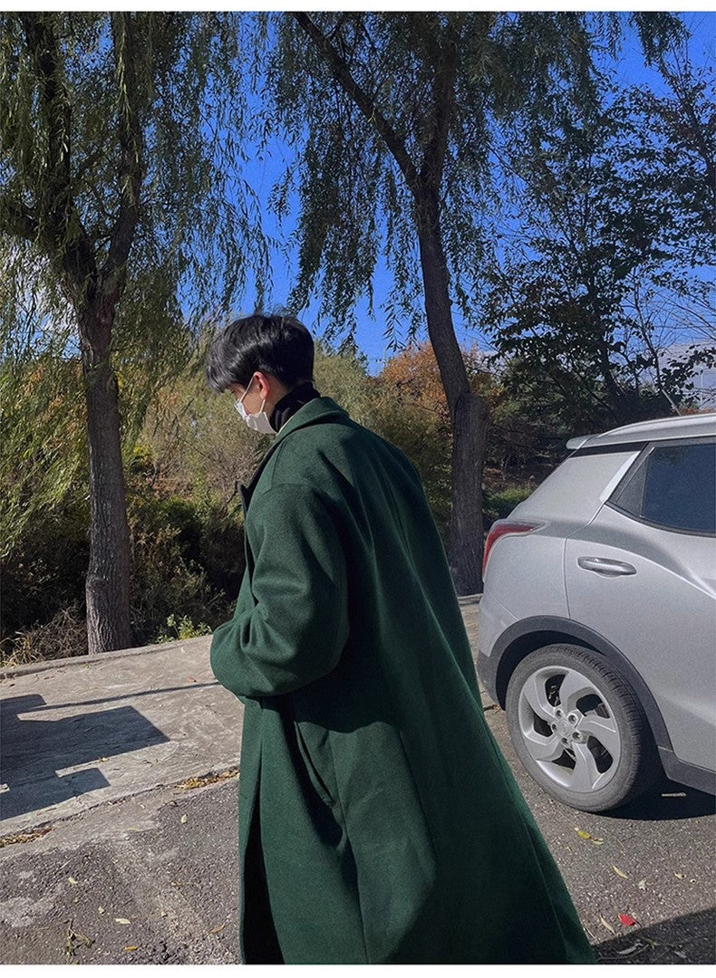 Mauroicardi Autumn Winter Long Warm Oversized Soft Dark Green Black Woolen Coat Men Loose Casual Korean Wool Blends Overcoat