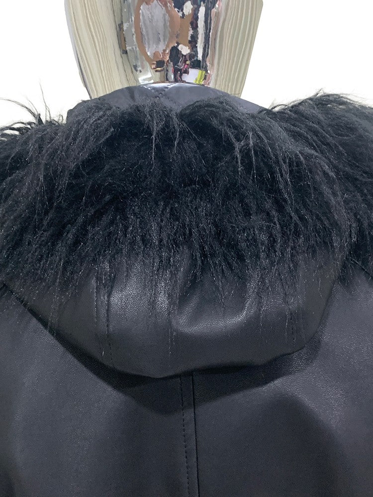 Mauroicardi Autumn Winter Short Oversized Black Warm Pu Leather Jacket Men with Faux Fur Trim Hood Loose Casual Korean Fashion
