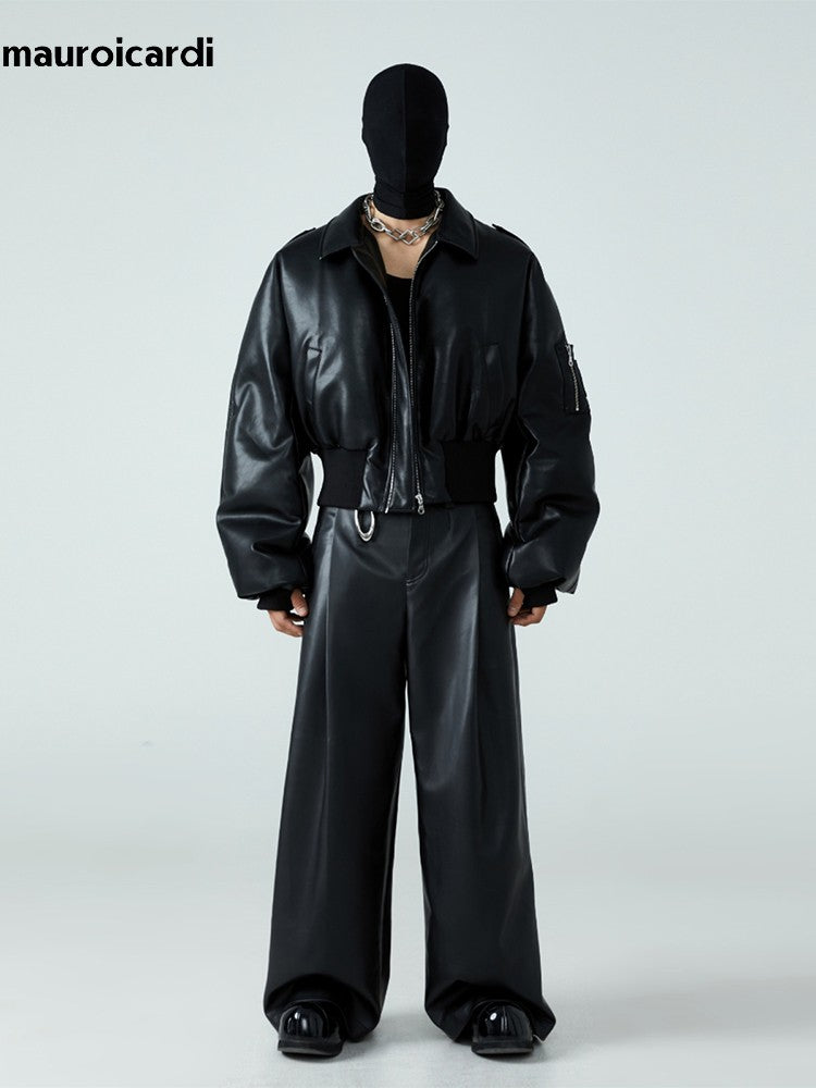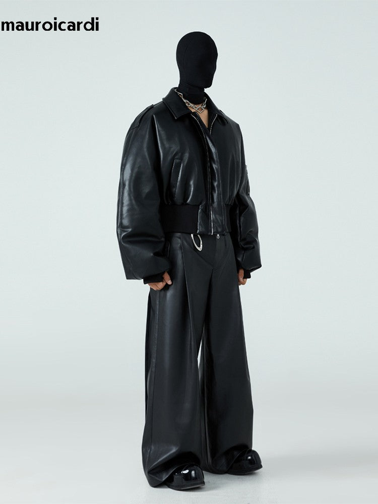 Mauroicardi Autumn Winter Short Thick Warm Black Pu Leather Jacket Men with Long Sleeve Zipper Casual Luxury Designer Clothes