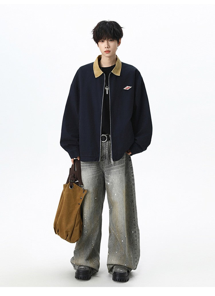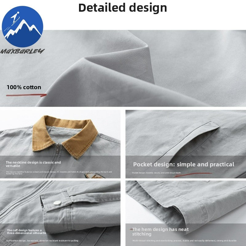 Maxbarley Trendy Cotton Jacket Men Autumn 2025 Hip-Hop Stitching Windproof Lapel Jackets K-Pop Antique Washed Motorcycle Coat
