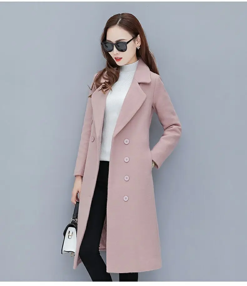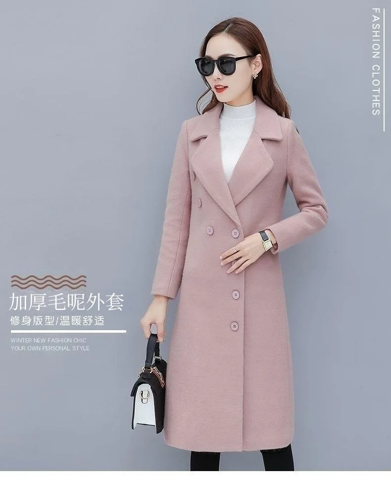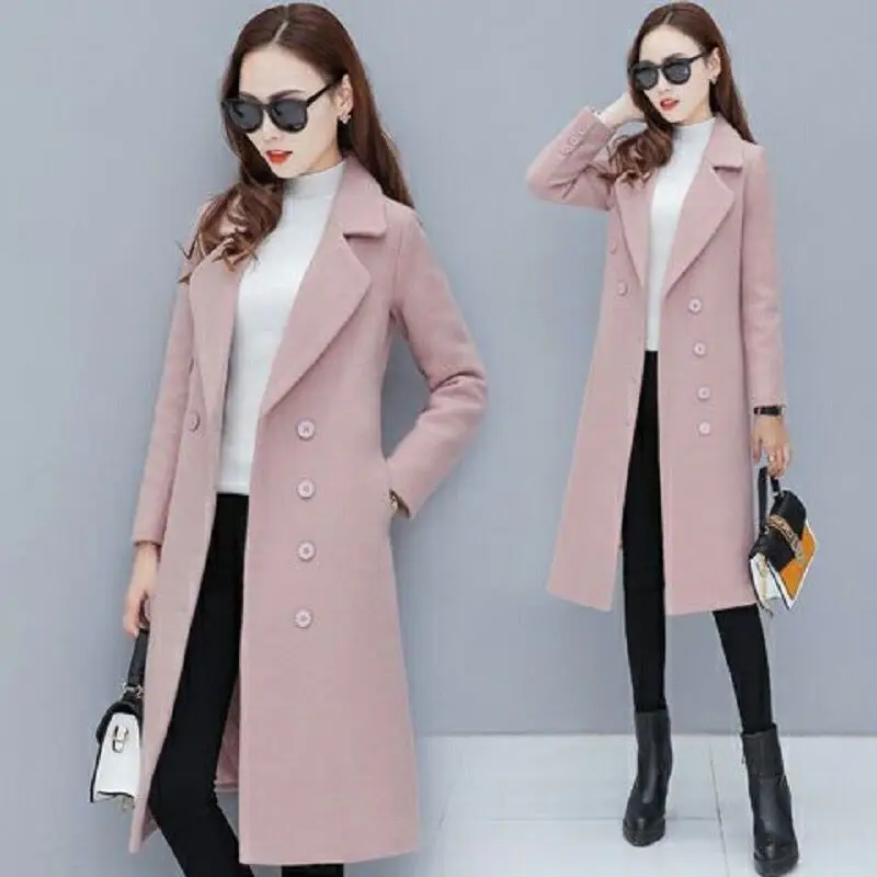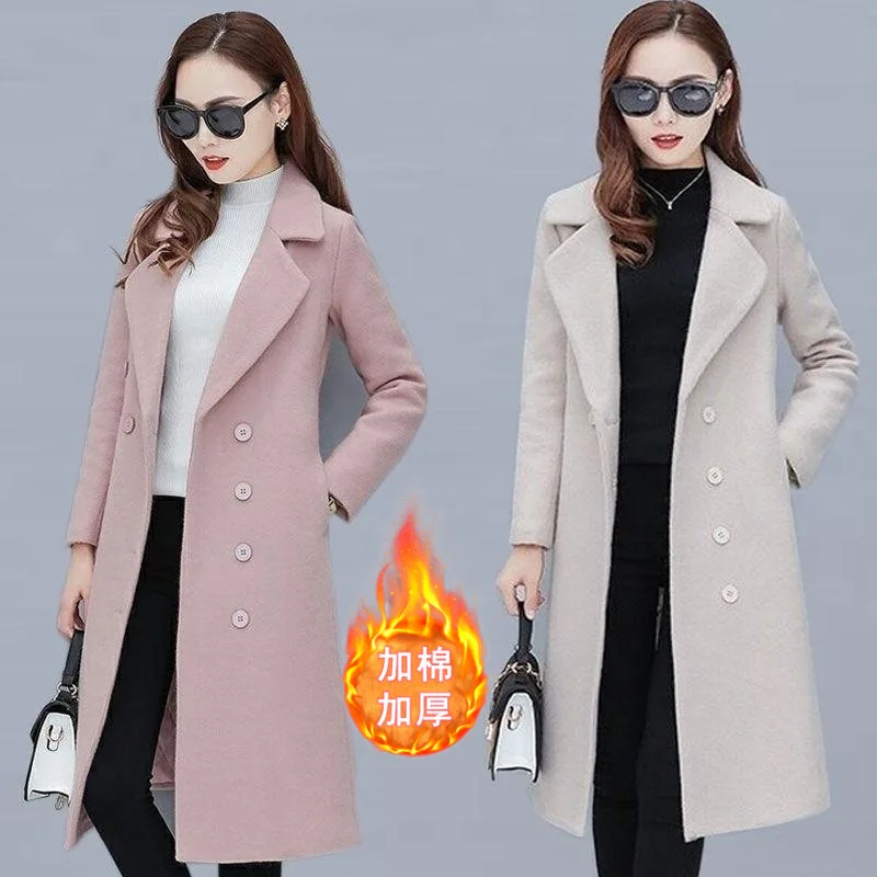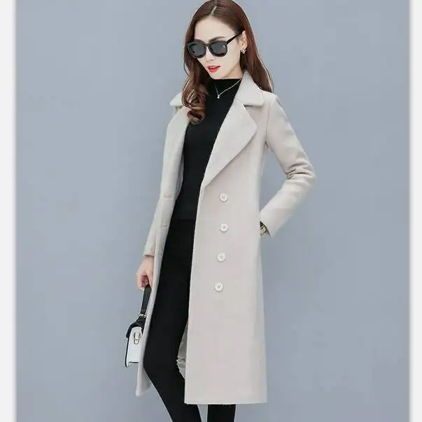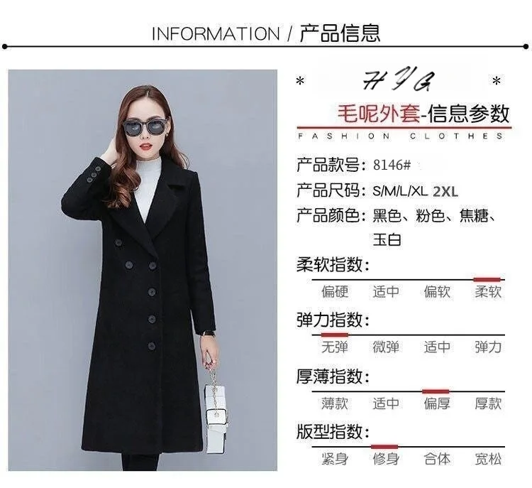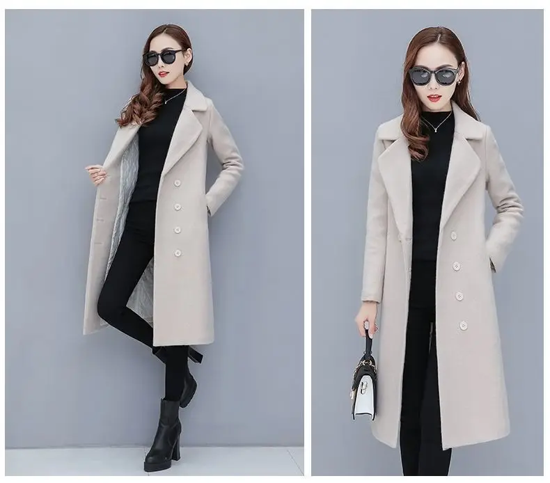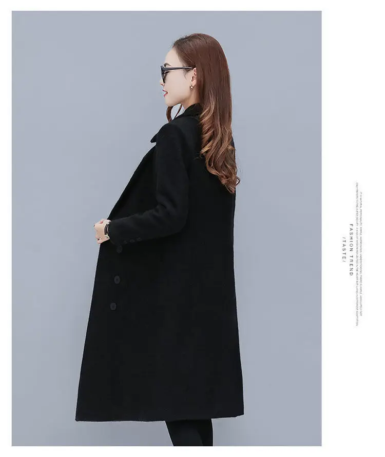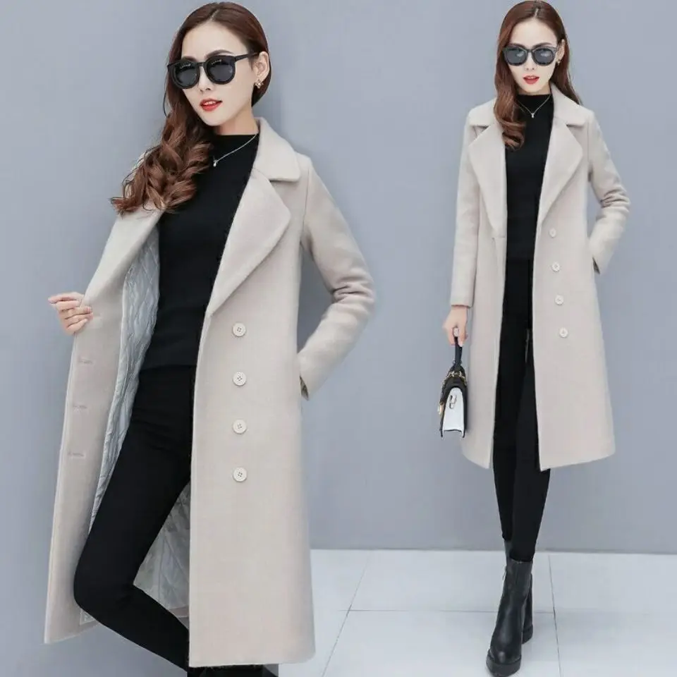 Medium-Length Women's Woolen Jacket Spring Autumn Winter Warm Simple Long Sleeve Overcoat Long Style For All Seasons