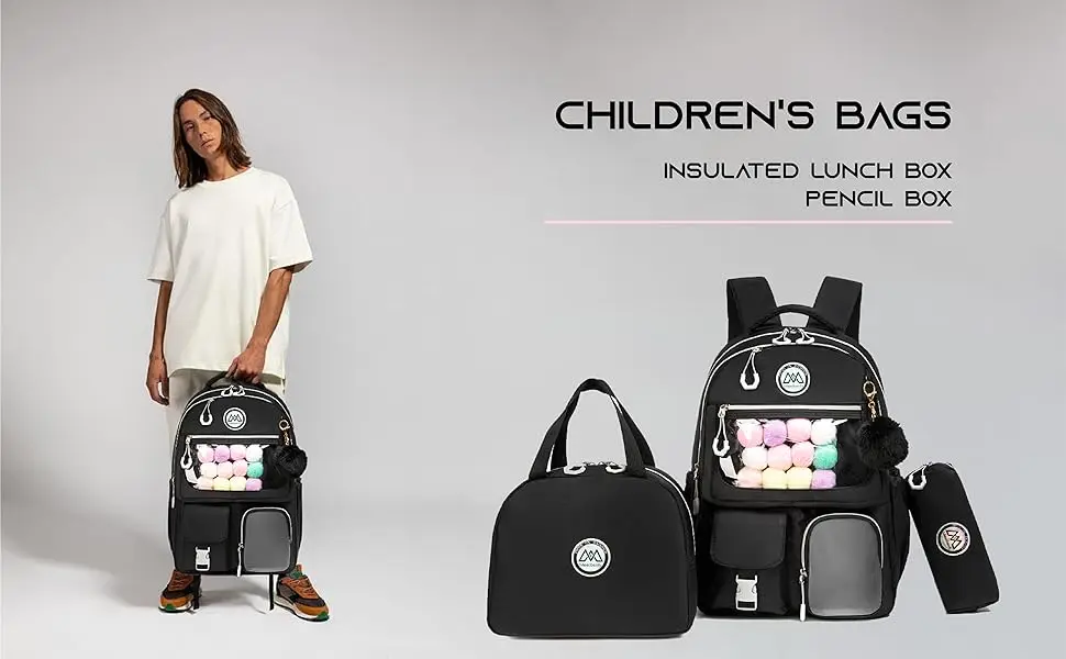in 1 Backpack Set;You will get 1 Backpack,1 Lunch Box,1 Pencil case . Backpack:16.5"X11.8"X7.5"Lunch Box:9X8.2"X3..9"Pencil