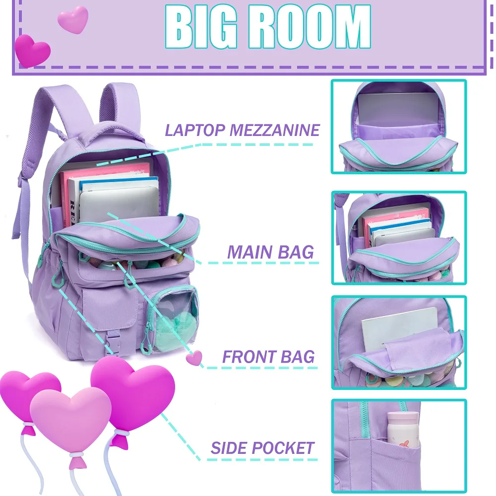 Meetbelify Backpack for Girls School Bag Aesthetic Backpack for Elementary Student Teen Girls