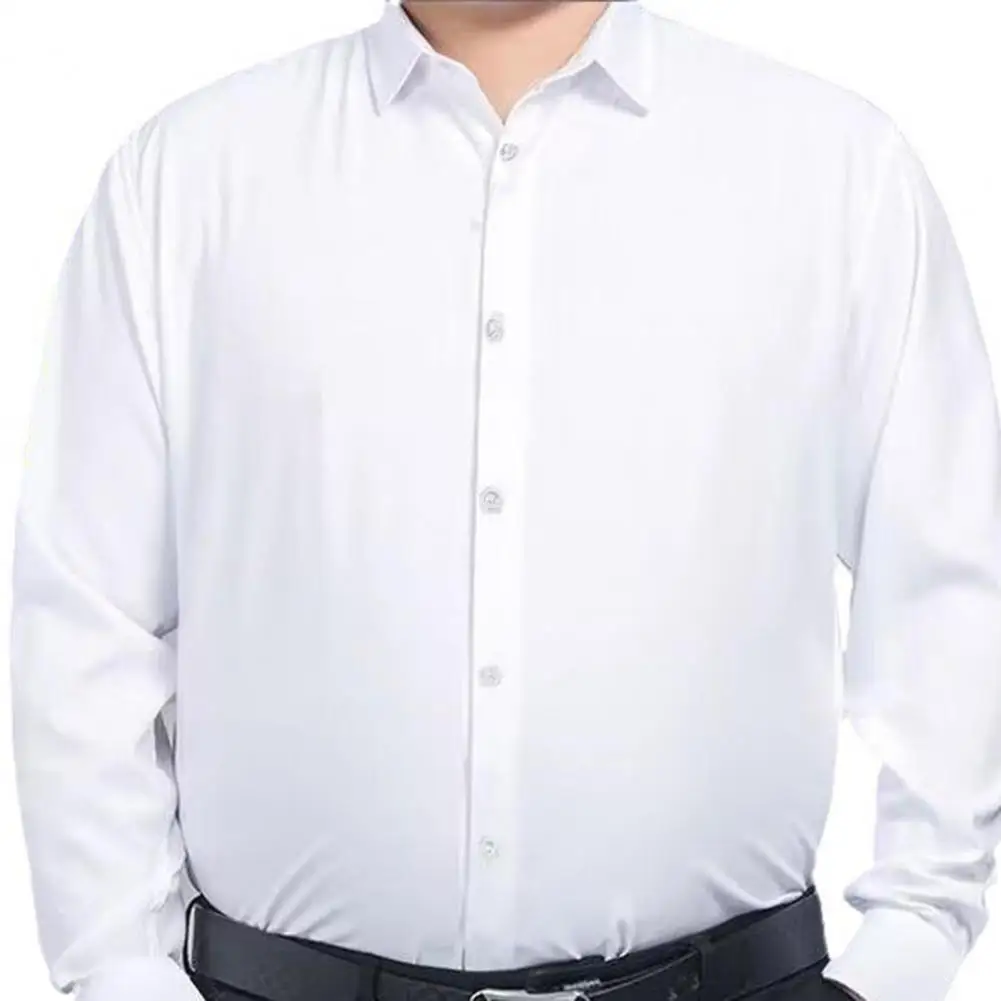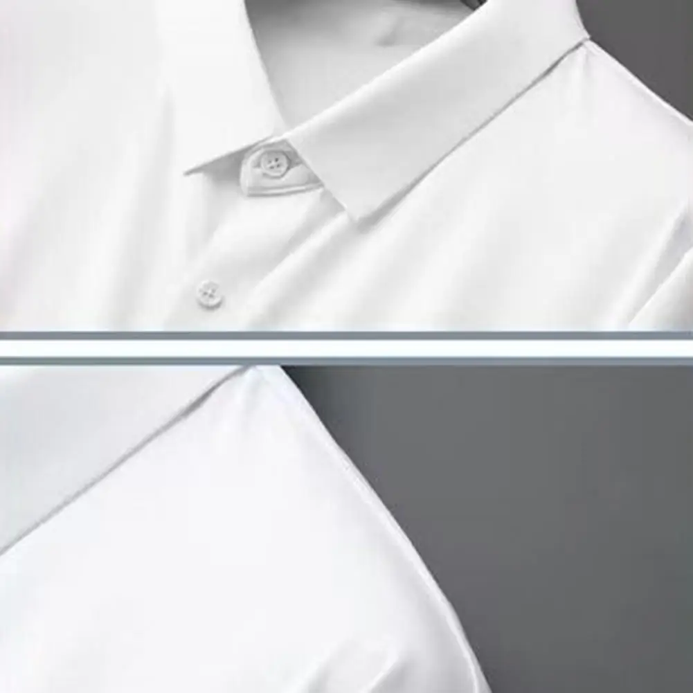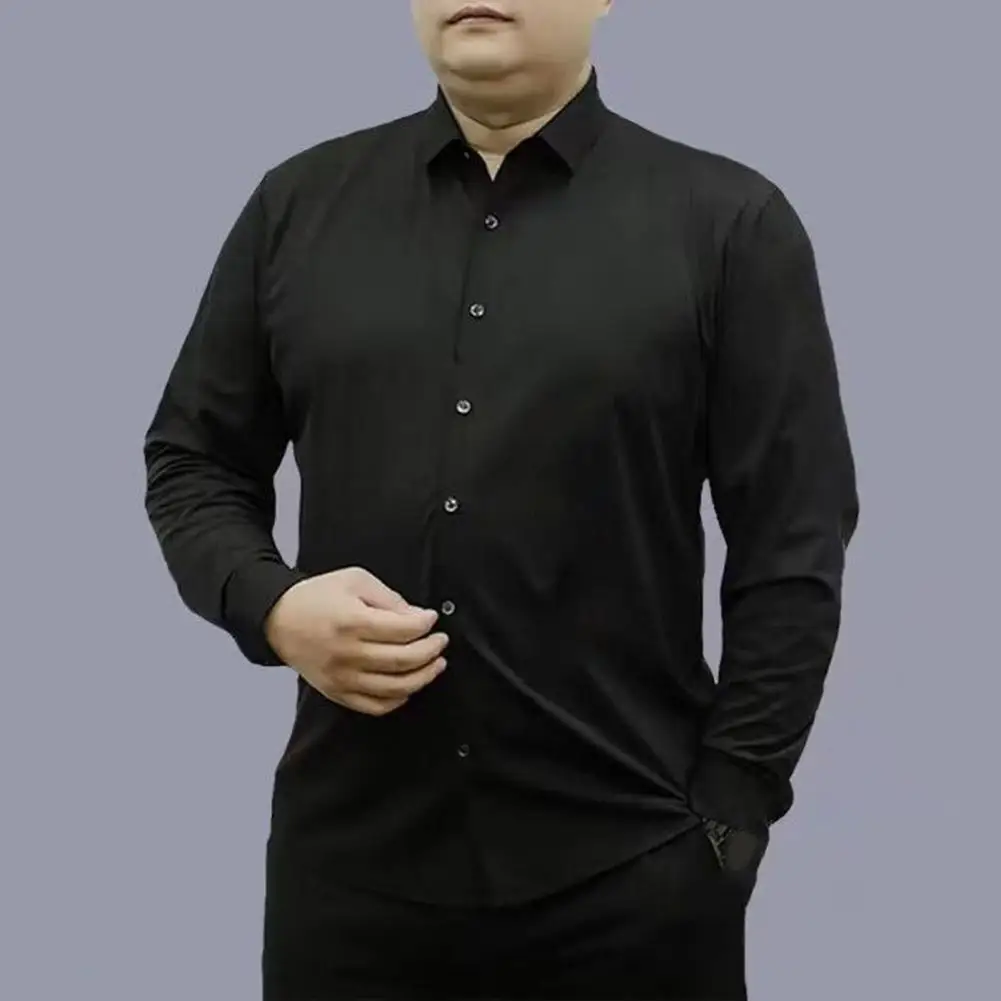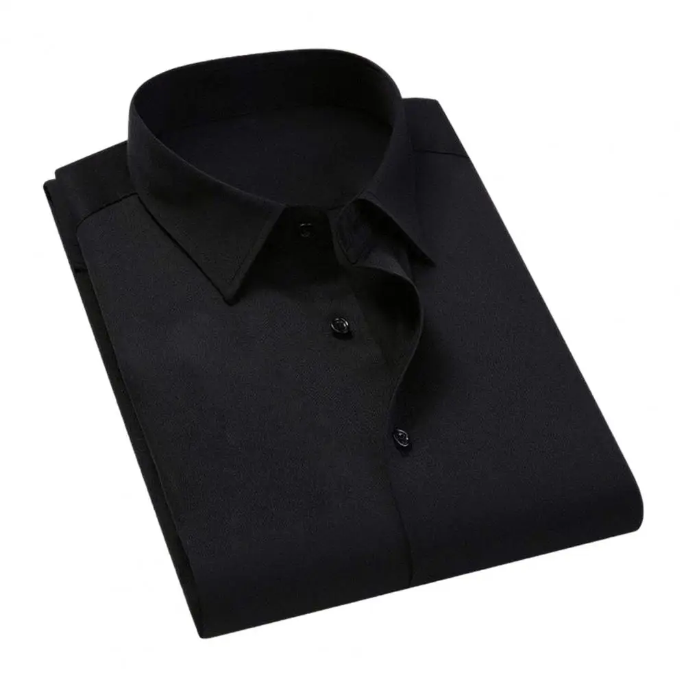 Men Business Shirt Men Shirt High Elasticity Men's Formal Shirt with Turn-down Collar Solid Color for Business for Soft