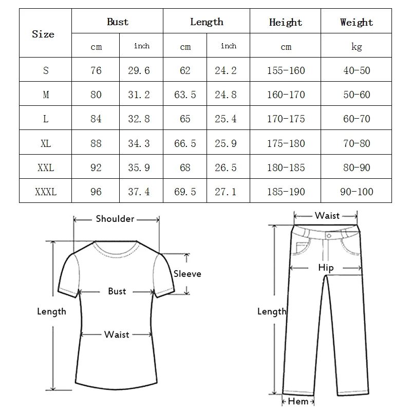 XXXL =Bust 96cm , Length 69.5cm,For Weight kg Height 185-190cm;