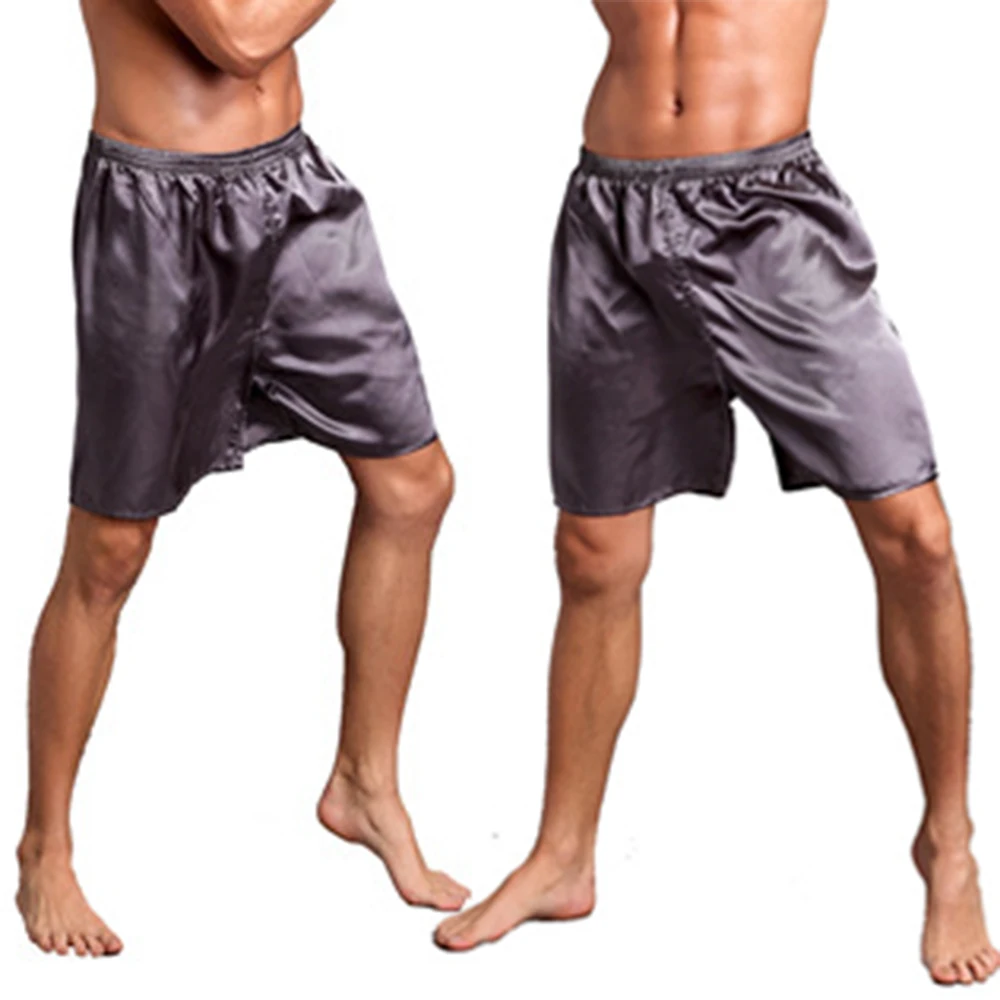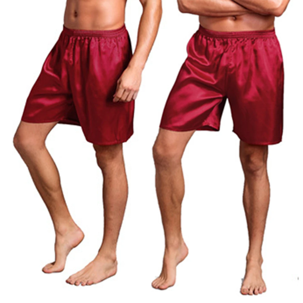Men Casual Home Nightwear Silk Satin Pajamas Shorts Soft Pyjamas Pants Sleep Comfortable Bottoms Solid Color Breathable Boxer