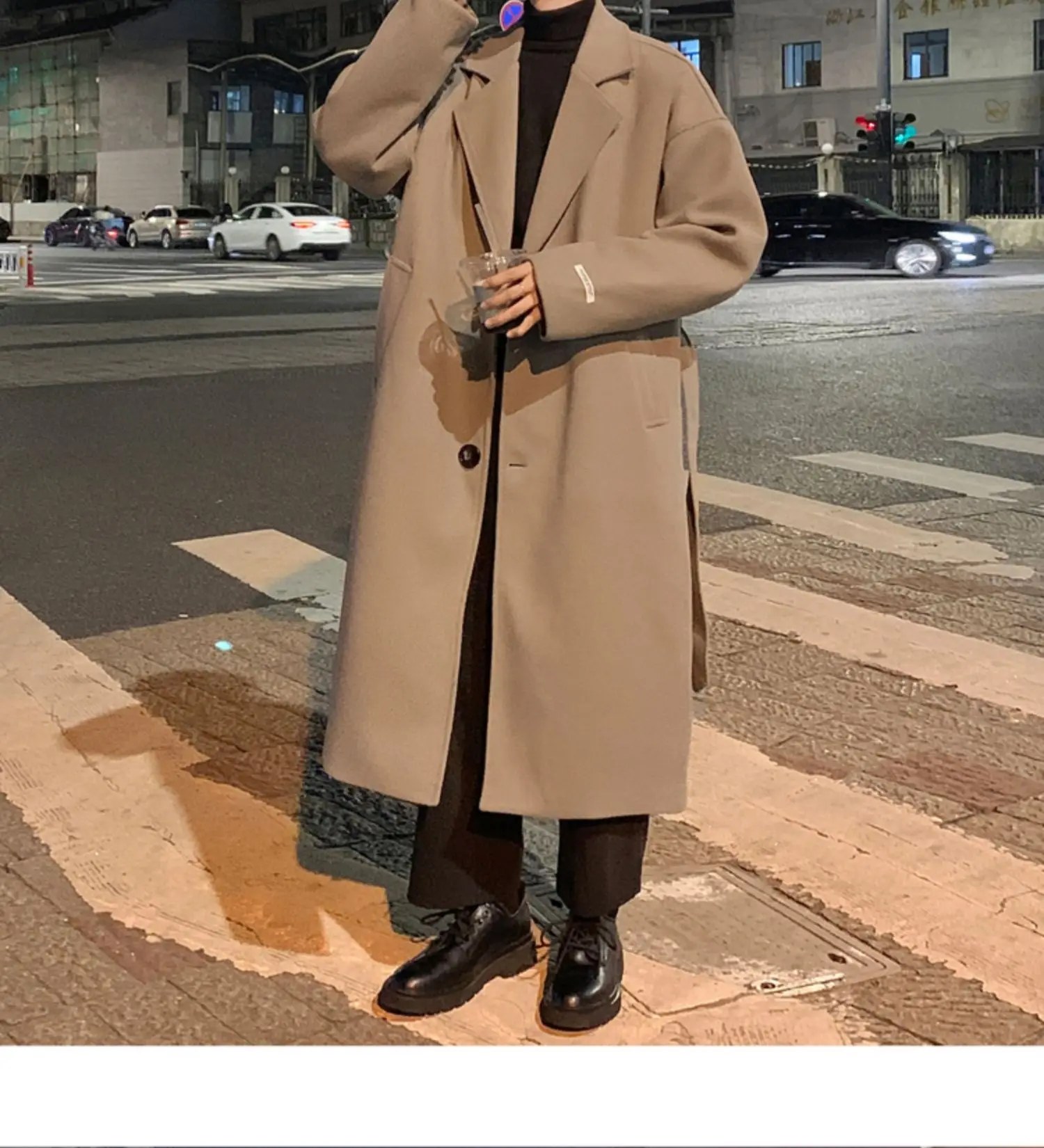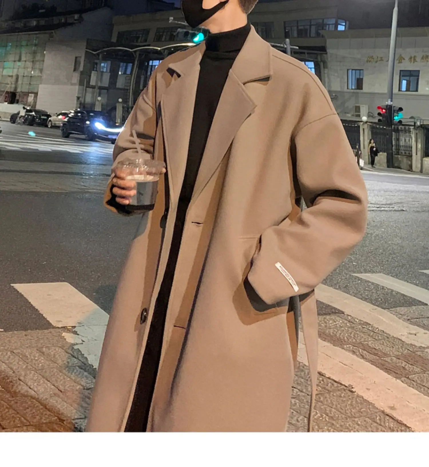 Men Fashion Winter Jacket Coats 2024 Thicken Wool Blends Coat Mens Oversized Overcoat Male Streetwear Warm Long Coat Q38