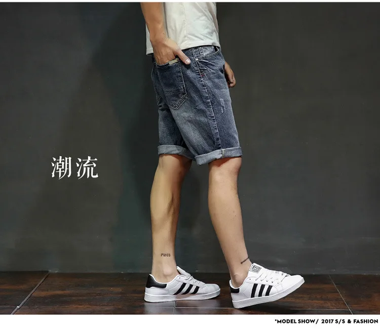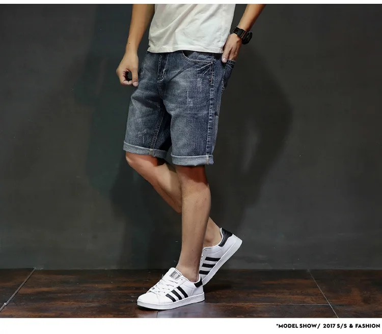Men Gray Denim Shorts Jeans Pants Good Quality Men Cotton Knee Length Short Jeans New Summer Male Large Size Denim Shorts 42