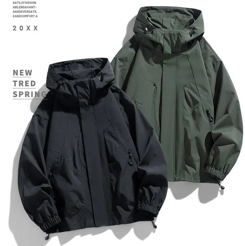Men Jacket Hooded Windbreaker Trench Coats Oversize 6XL 7XL 8XL Plus Size Waterproof Black Bomber Camping Loose Thin Softshell