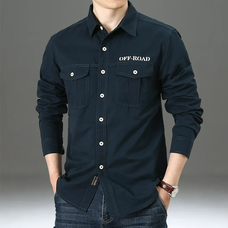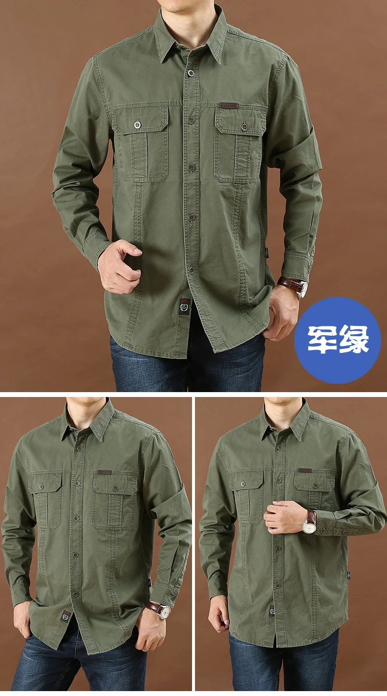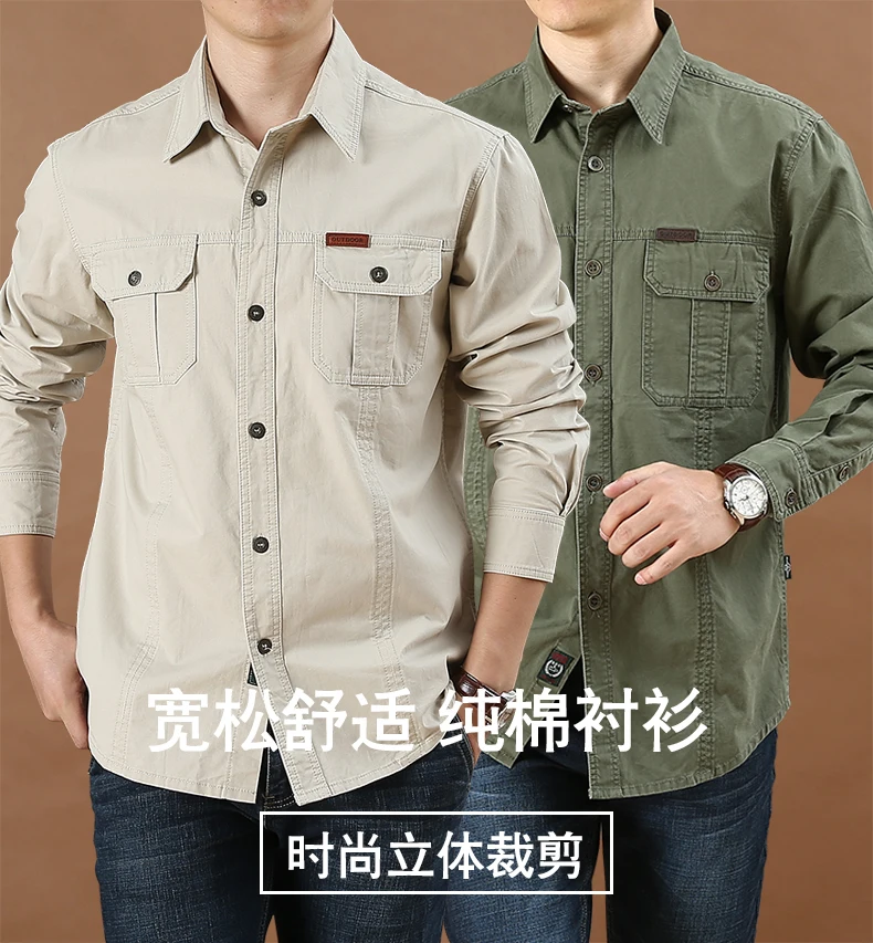 Men Loose Long-sleeved Shirt. New Solid Color Shirt for Middle-aged and Young People in Europe and America in Spring and Autumn