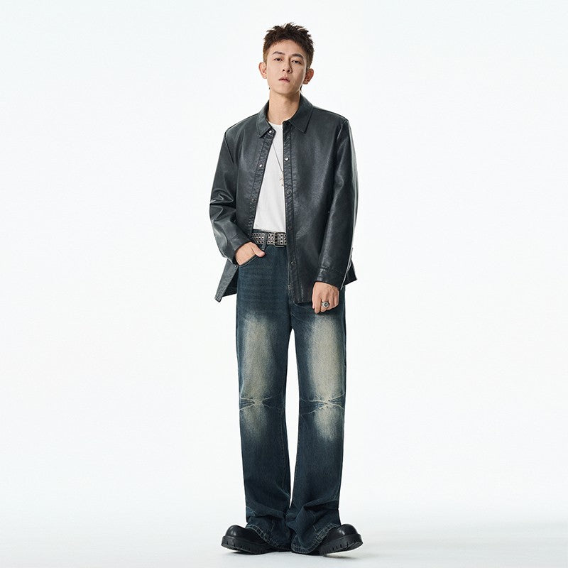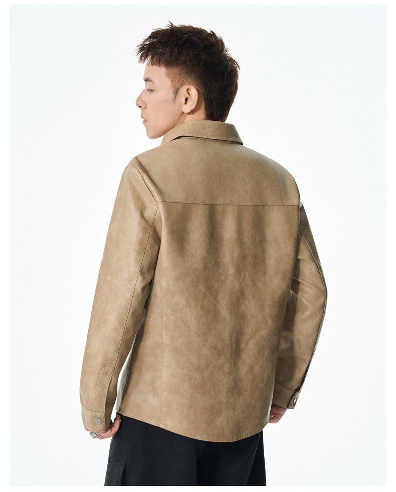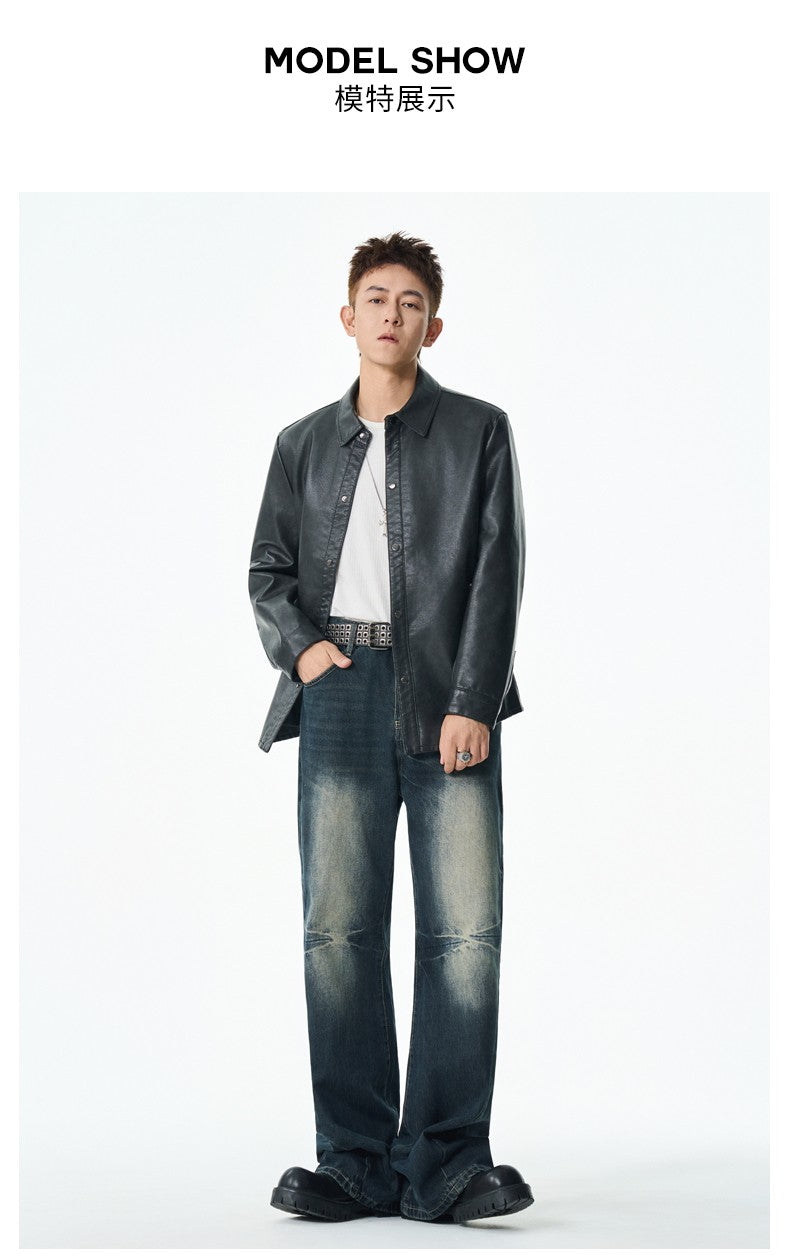 Men New Leather Jacket Men's Retro Black Classic Turn Collar Leather Jackets Trendy Cool Jacket Motorcycle Faux Leather Jacket