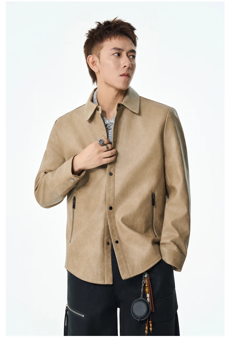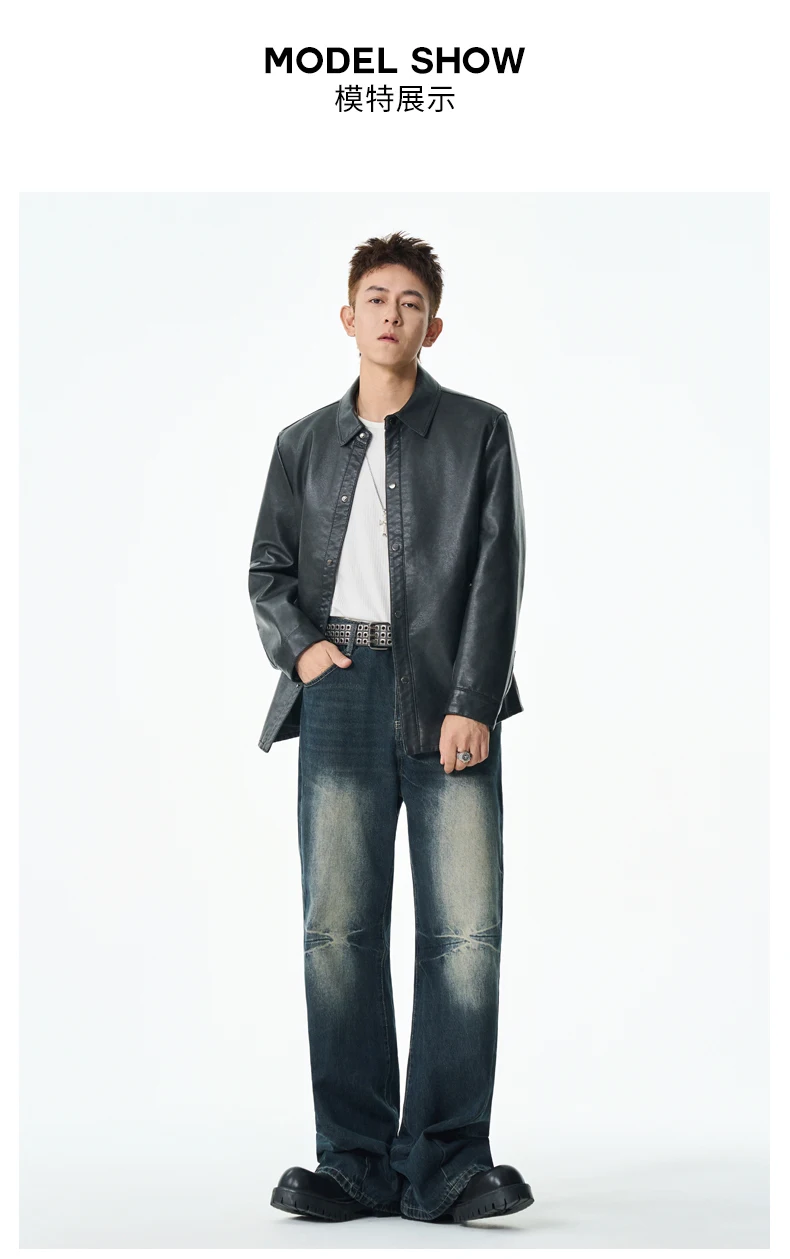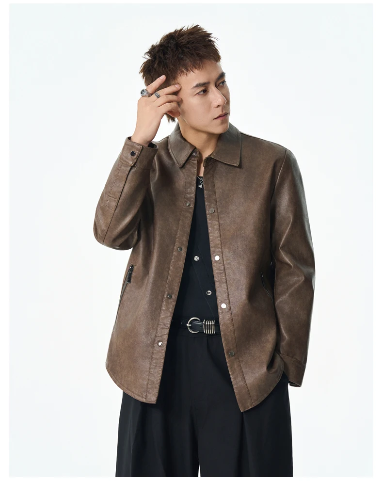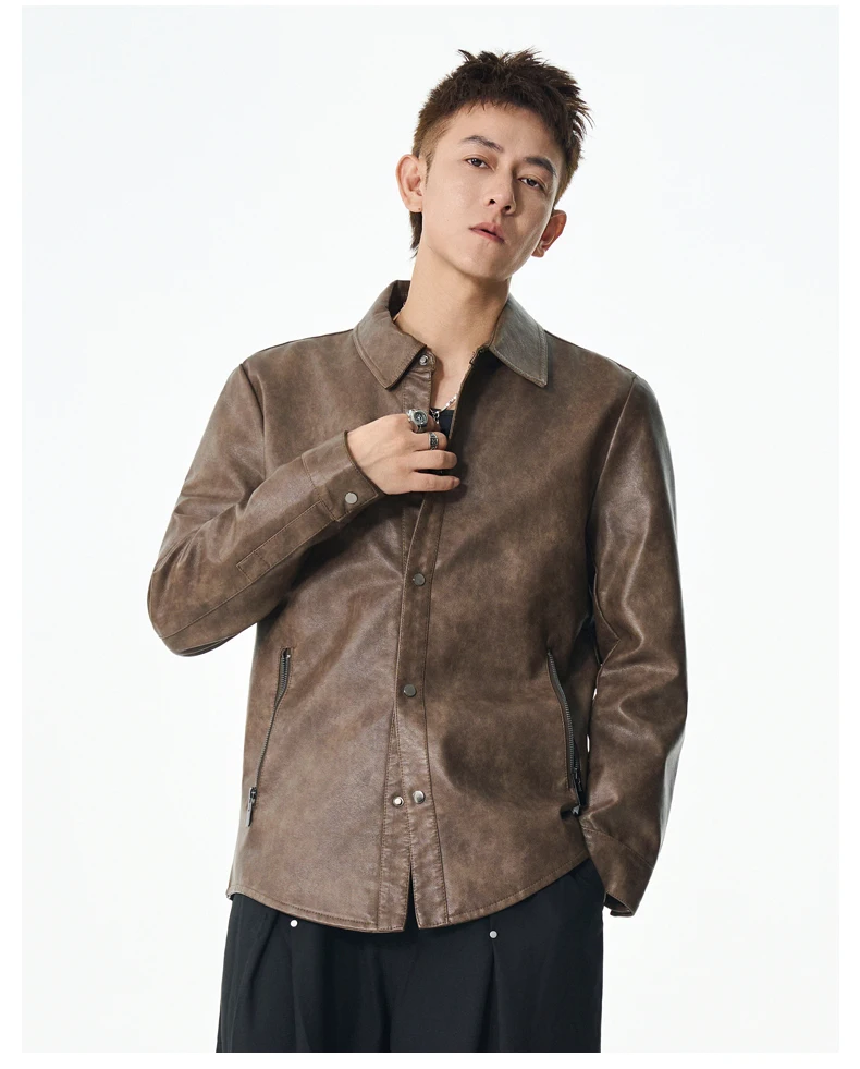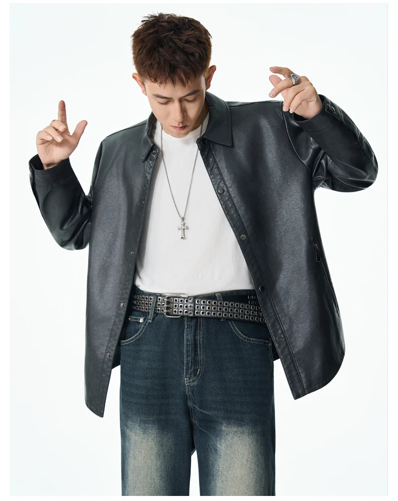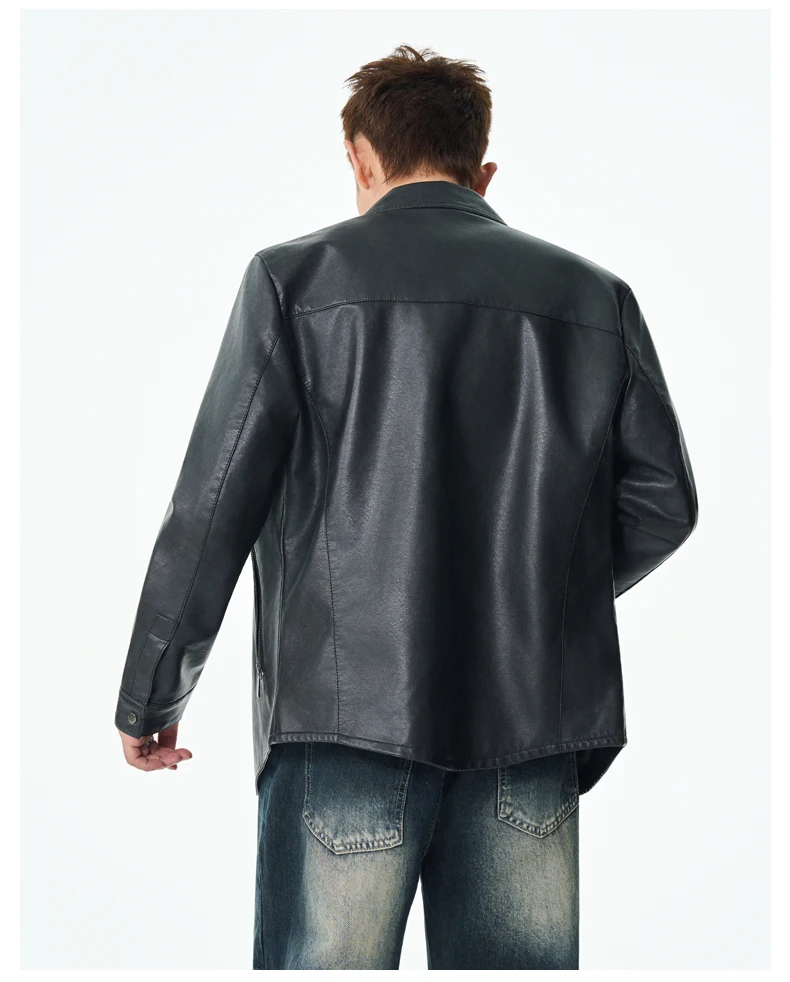Men New Leather Jacket Men's Retro Black Classic Turn Collar Leather Jackets Trendy Cool Jacket Motorcycle Faux Leather Jacket