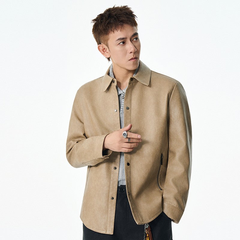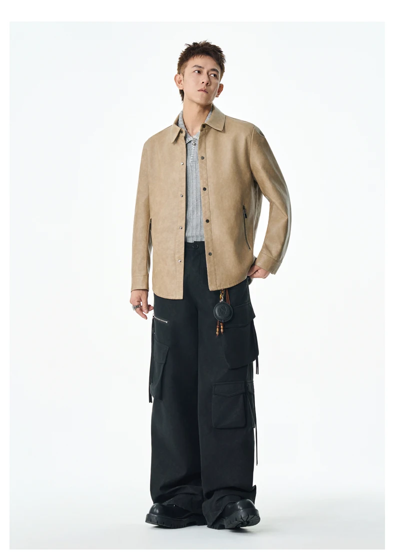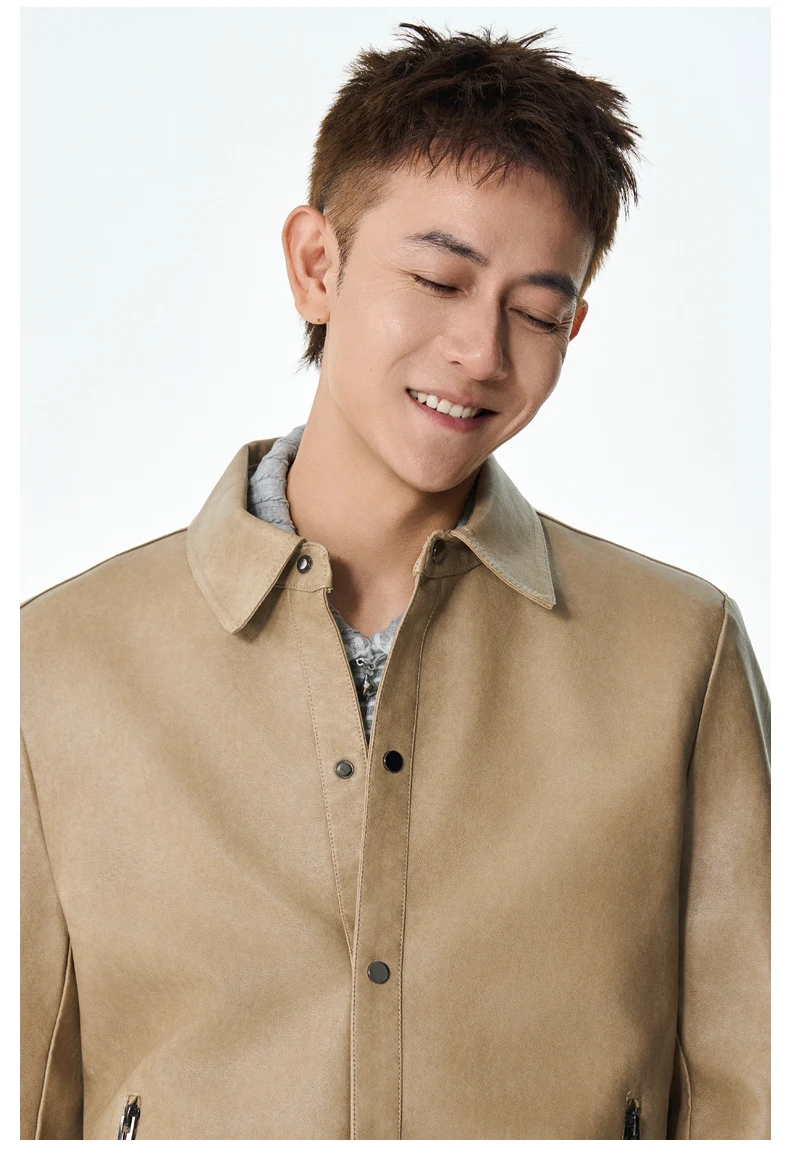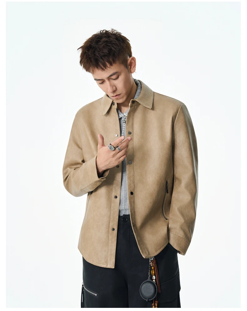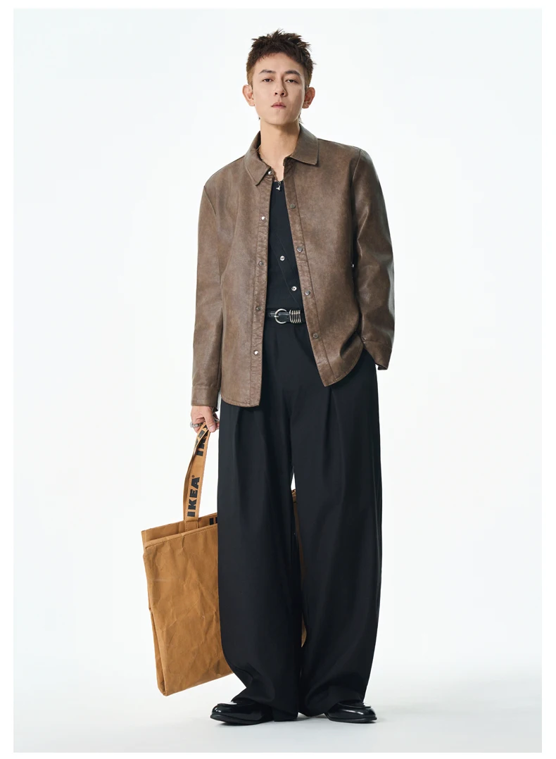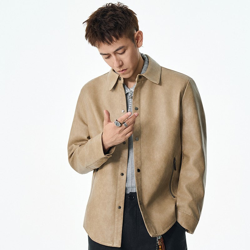 Men New Leather Jacket Men's Retro Black Classic Turn Collar Leather Jackets Trendy Cool Jacket Motorcycle Faux Leather Jacket