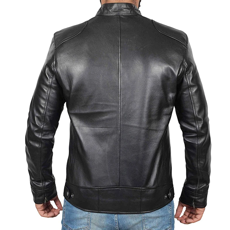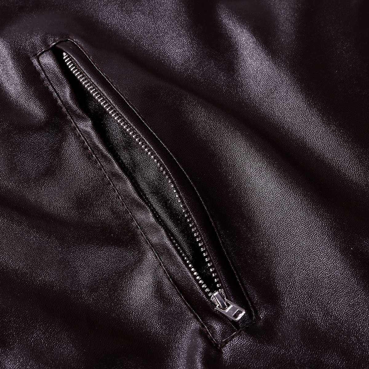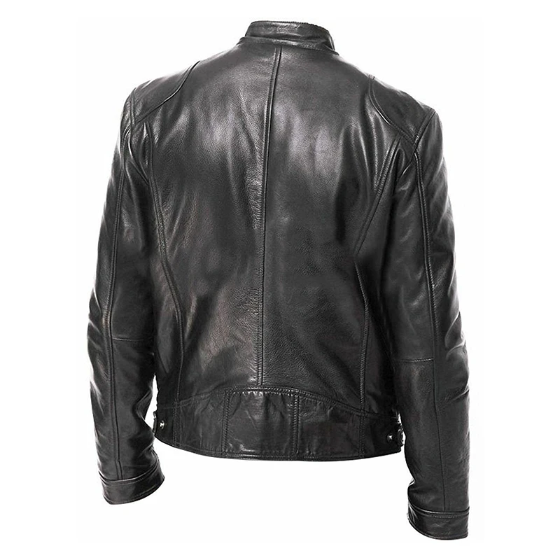 Men' s Retro Leather Jacket Stand Collar Biker Jacket Slim fit Multi-Pocket Coat Autumn Winter OutwearSize(cm)