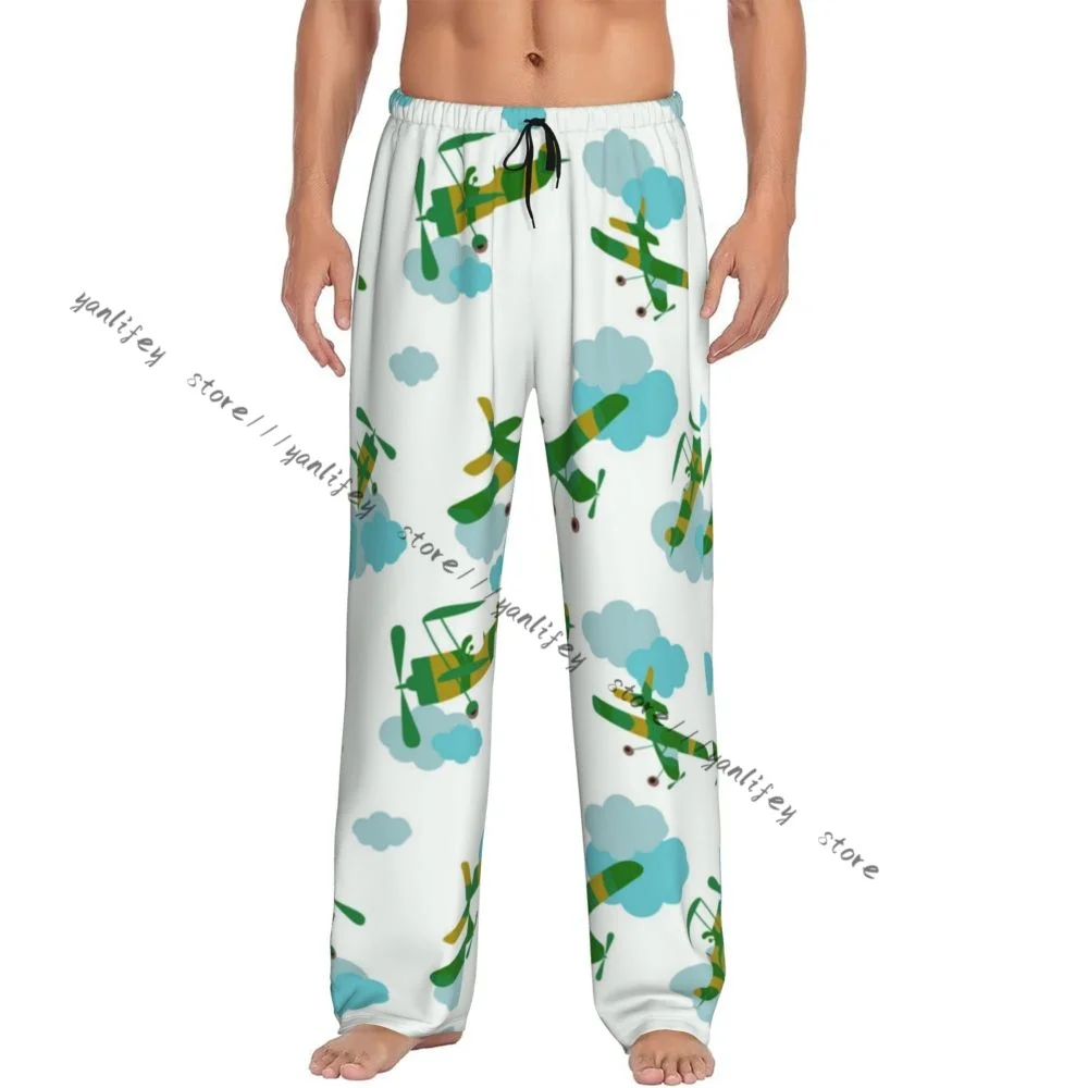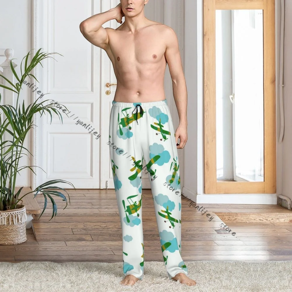 Men Sleep Bottoms Male Lounge Trousers Men's Airplanes And Clouds Pajama Pants