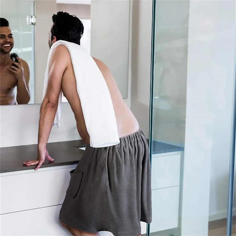 Men Soft Wearable Bath Towel with Pocket Bathrobes Shower Wrap Sauna Gym Swimming Holiday Spa Bath Beach Towel Toalla De Playa