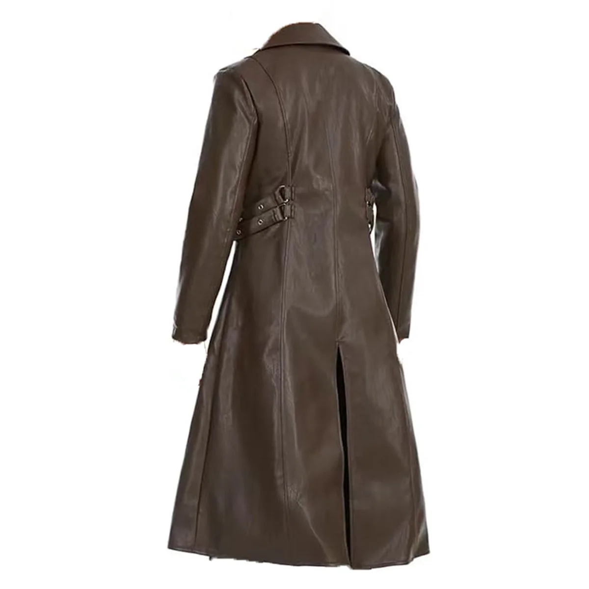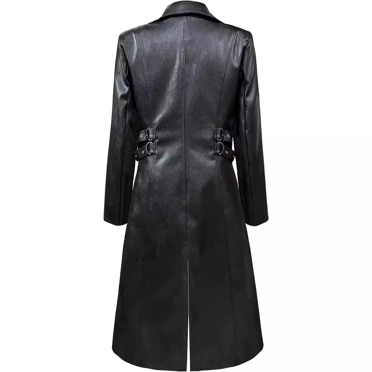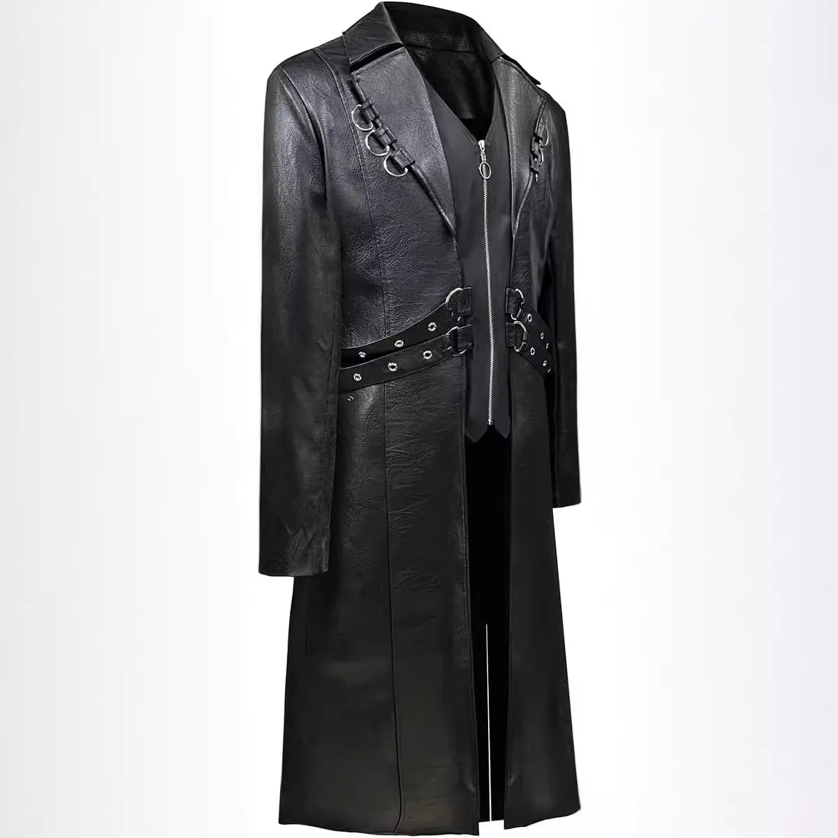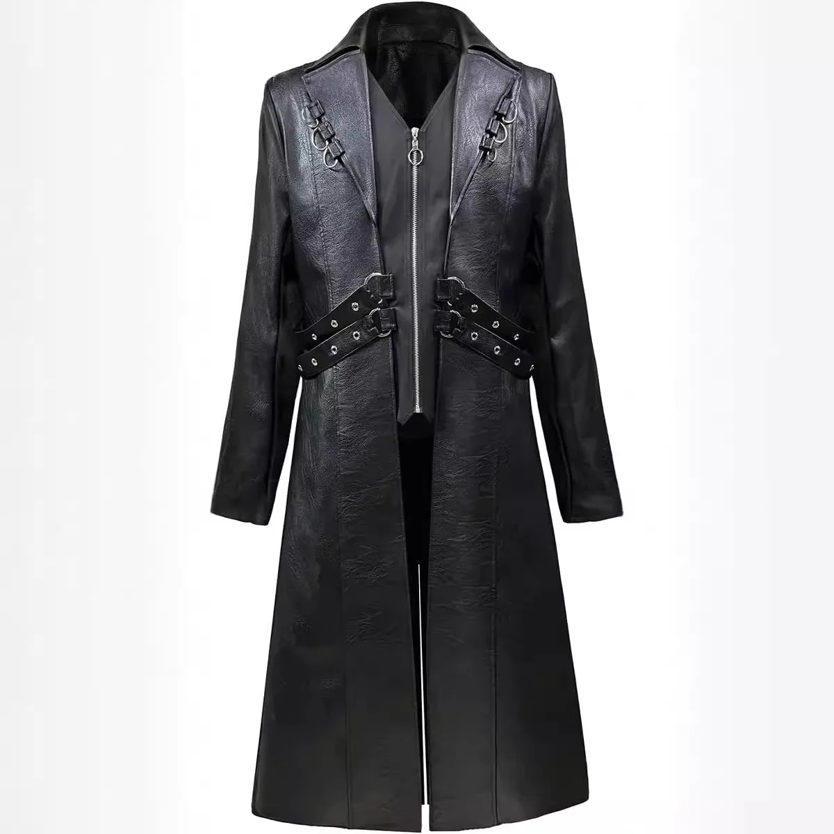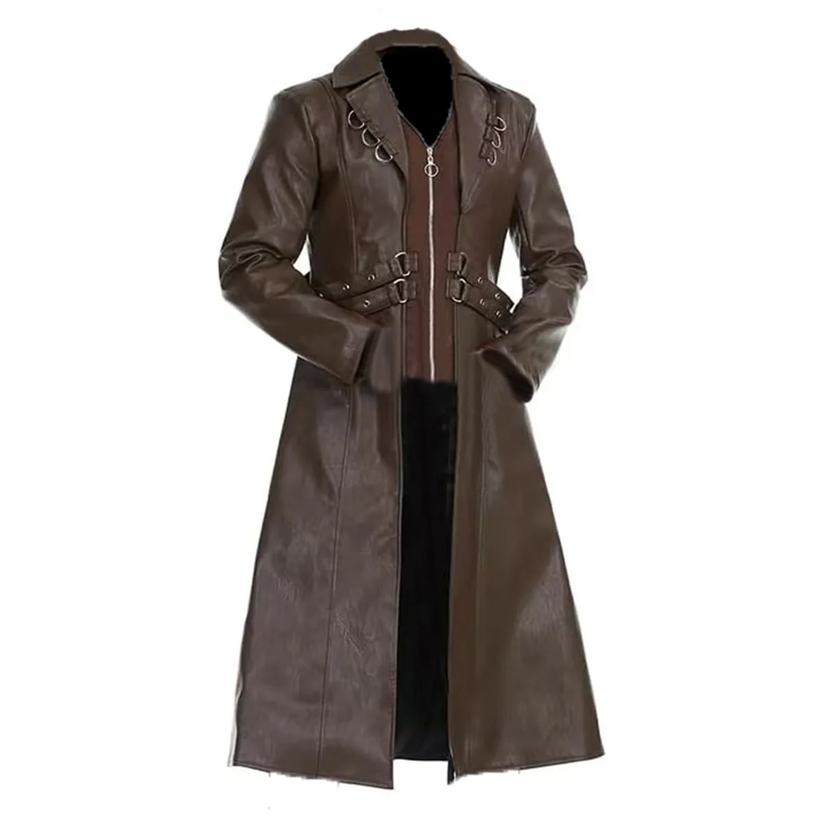 Men Steampunk Faux Leather Vintage Jacket Medieval Trench Coat Long Outwear Winter Gothic Windbreaker Motorcycle Halloween Stage