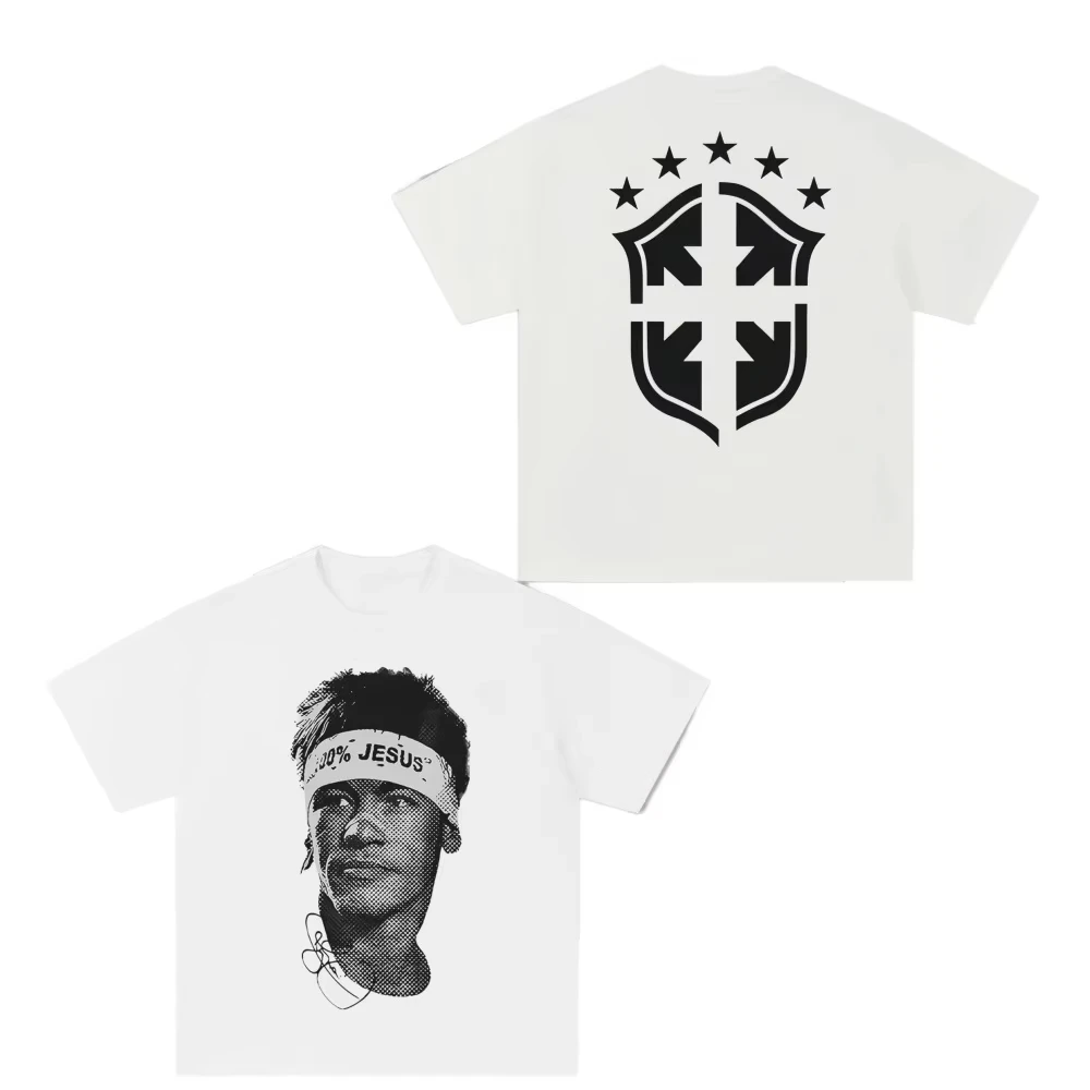 Men T-thirts Cristiano Ronaldo Pure Cotton American-style Streets Both Sexes Fashionable Vintage Print Short-sleeved T-shirt