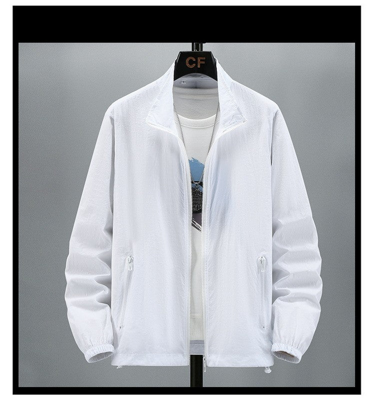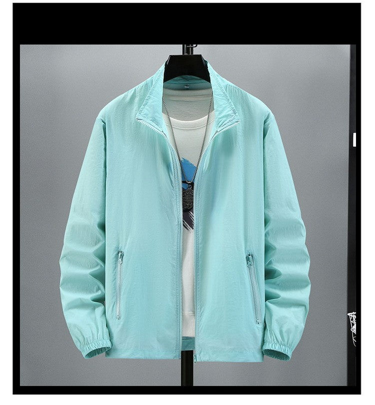 Men Teens Breathable Ultrathin Ultralight Stand Collar Quick Dry Sun-Protective Camping Hiking Jacket Skin Coat Windbreaker