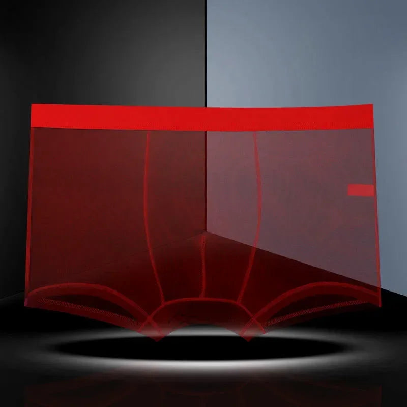 Men Transparent Boxers Bulge Ice Silk See Through Underpants Sexy Mid Waist Panties Lingerie Intimates