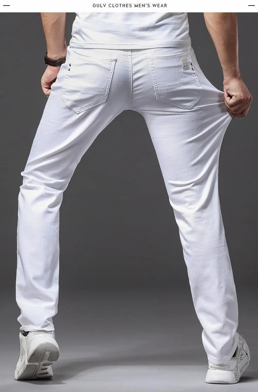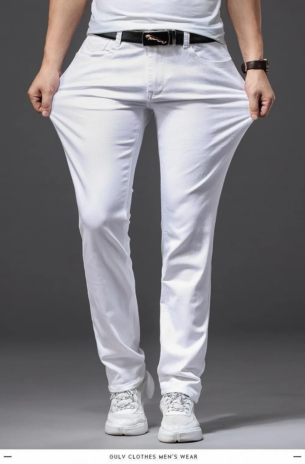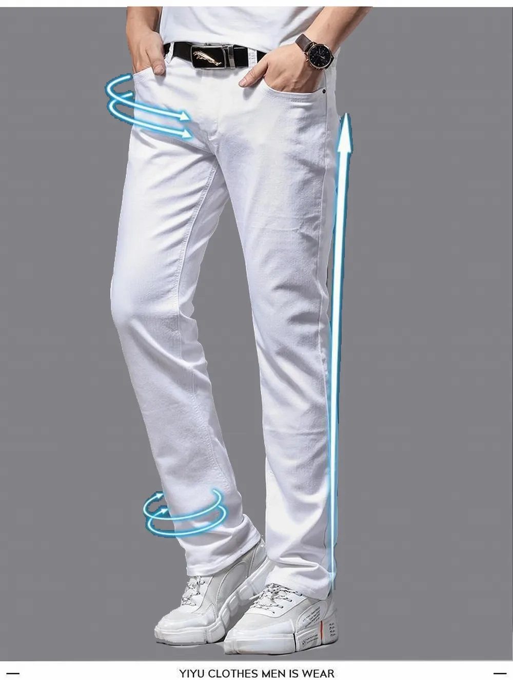 Men White Jeans Elasticity Straight Slim Fit Casual Soft Business Classic Brand Trousers Fashion Advanced Stretch Denim Pants