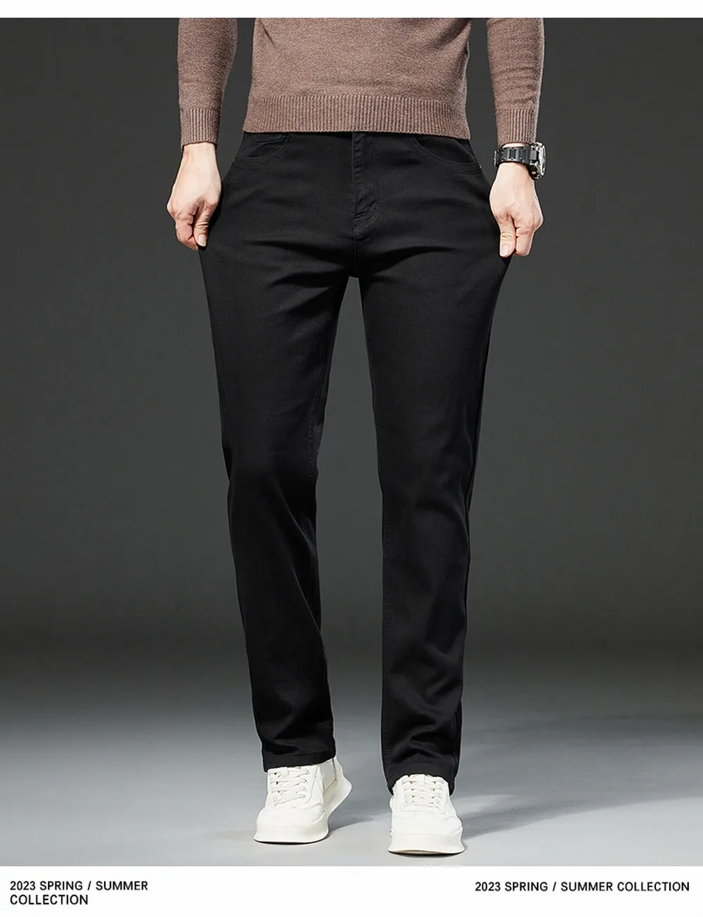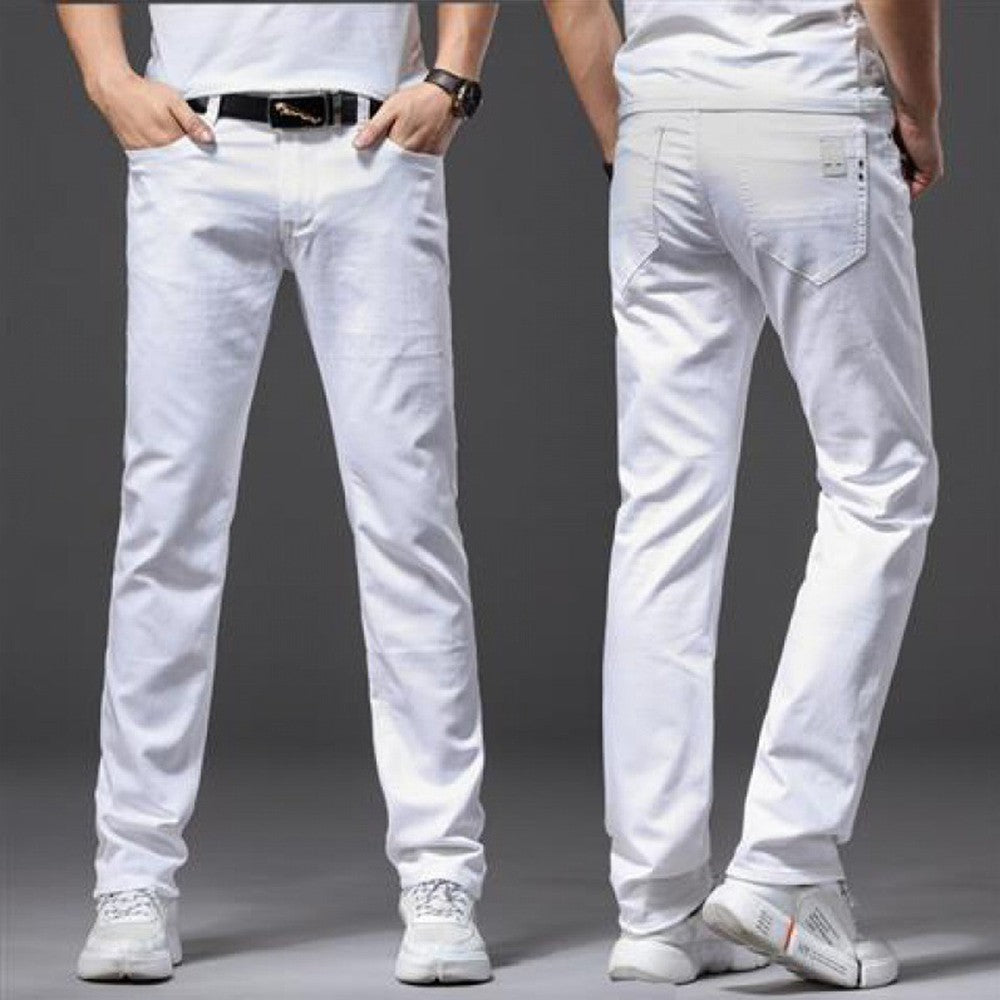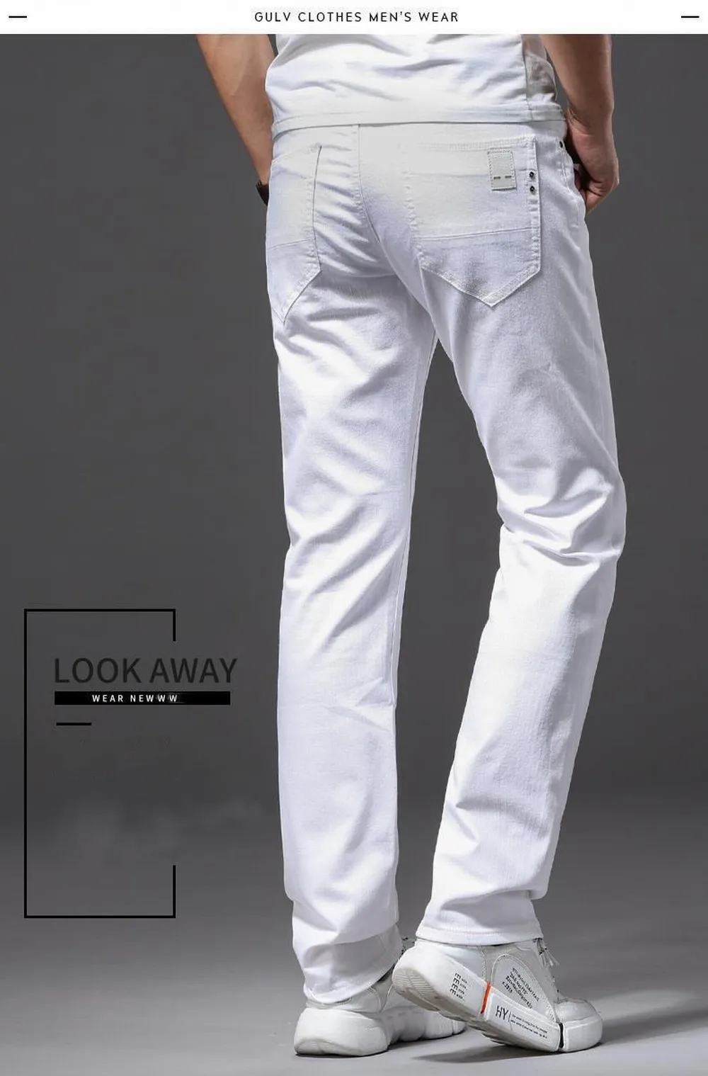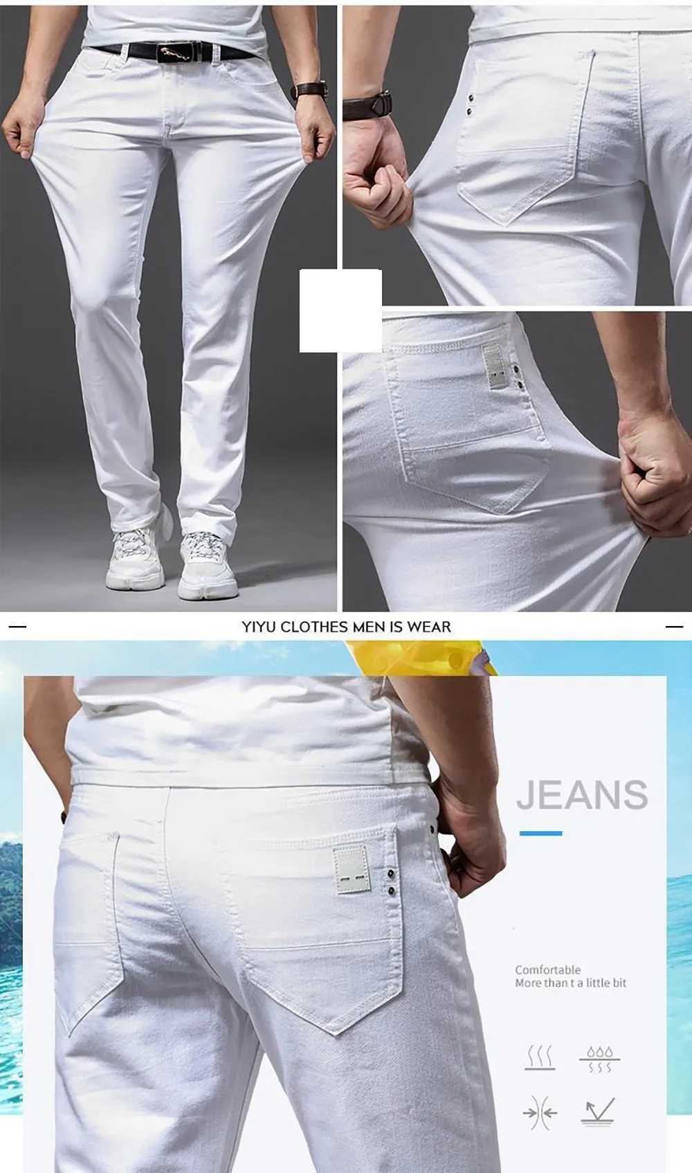 Men White Jeans Elasticity Straight Slim Fit Casual Soft Business Classic Brand Trousers Fashion Advanced Stretch Denim Pants