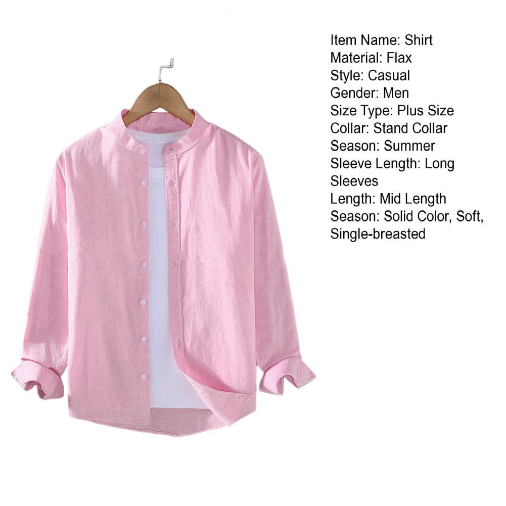 Men Spring Shirt Single-breasted Stand Collar Cardigan Long Sleeevs Loose Plus Size Mid Length Men Fall Top