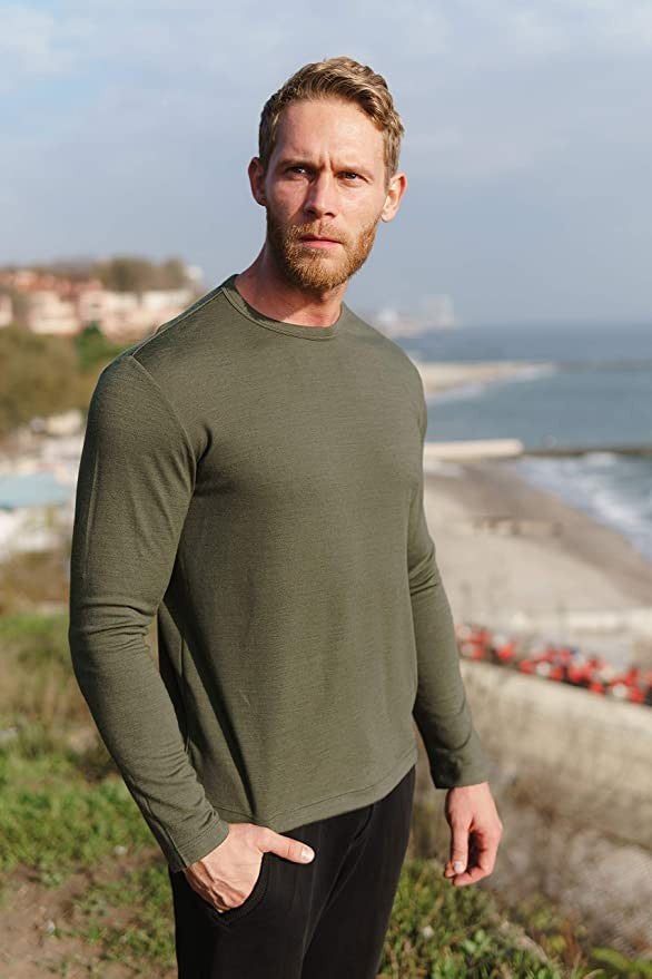Men's 100% Merino Wool Base Layer 240G Shirt Thermal Top Warm Wicking Breathable Anti-Odor Underwear Warm Base Layer Clothing