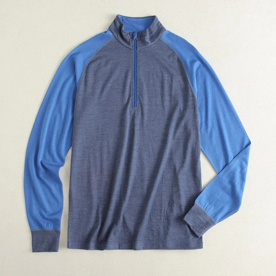 Men's 100% Merino Wool Base Layer Top 1/2 Zip Long Sleeve T Shirts Thermal Underwear Hiking Breathable Wicking Moisture 210GSM