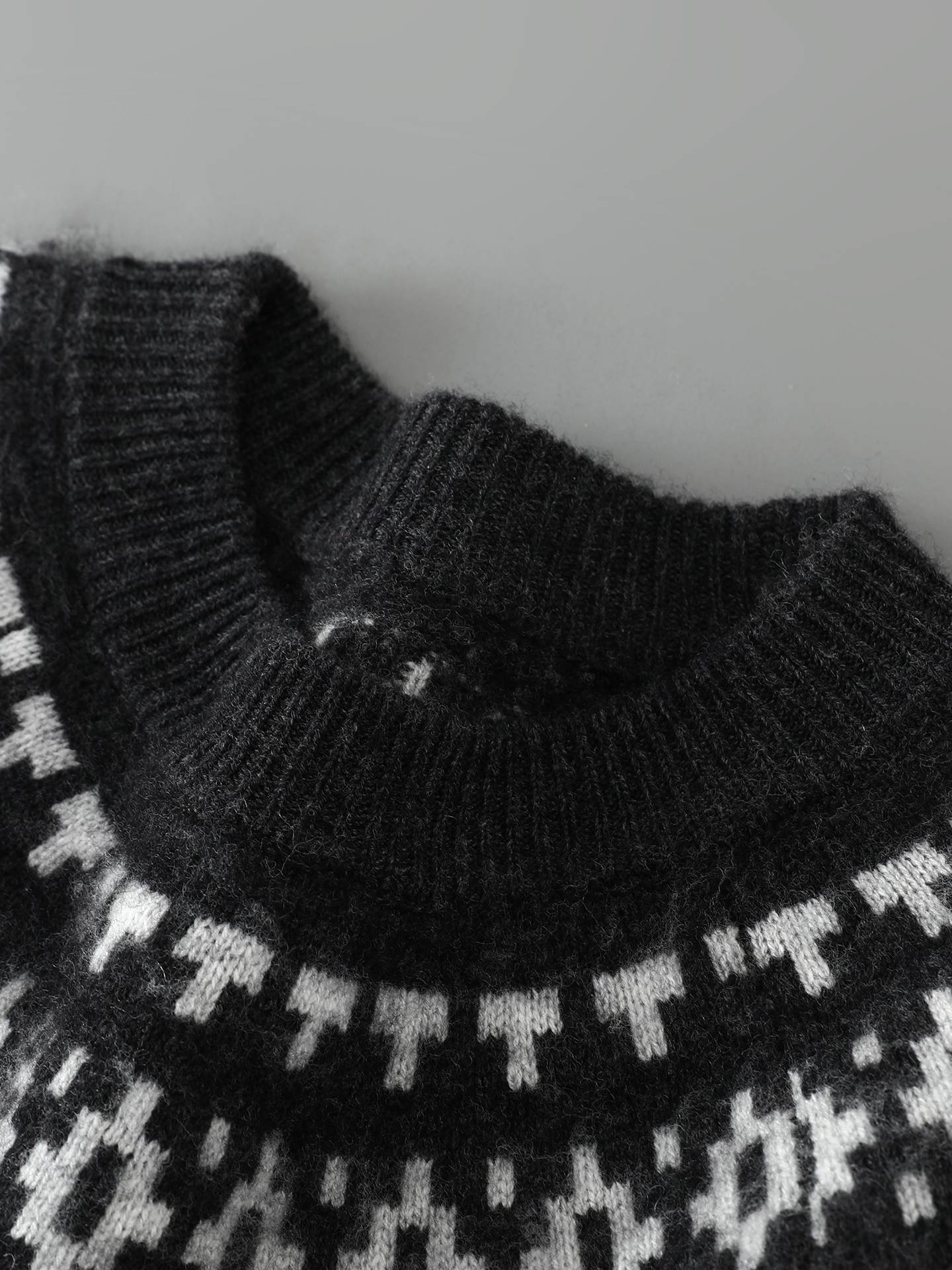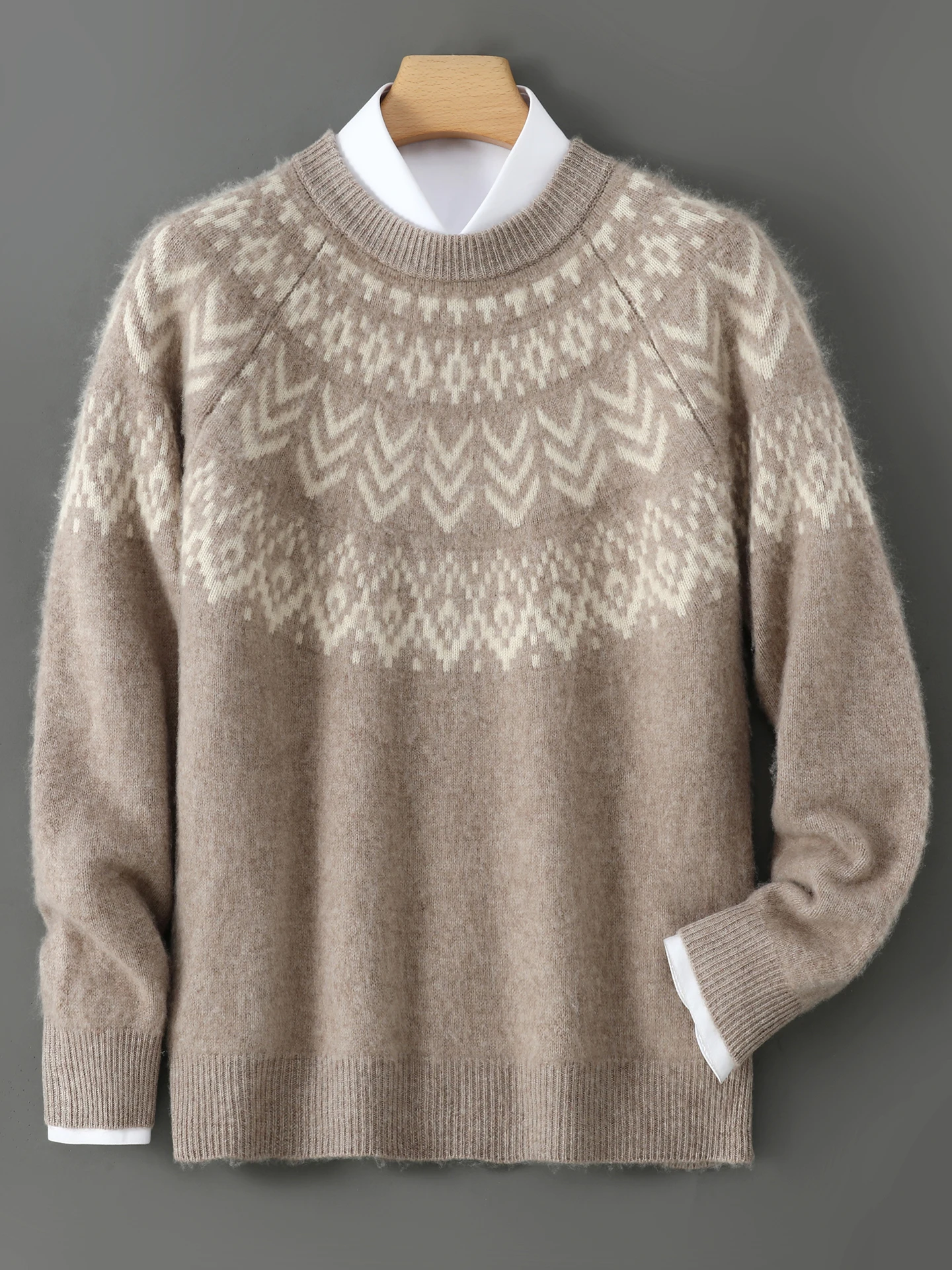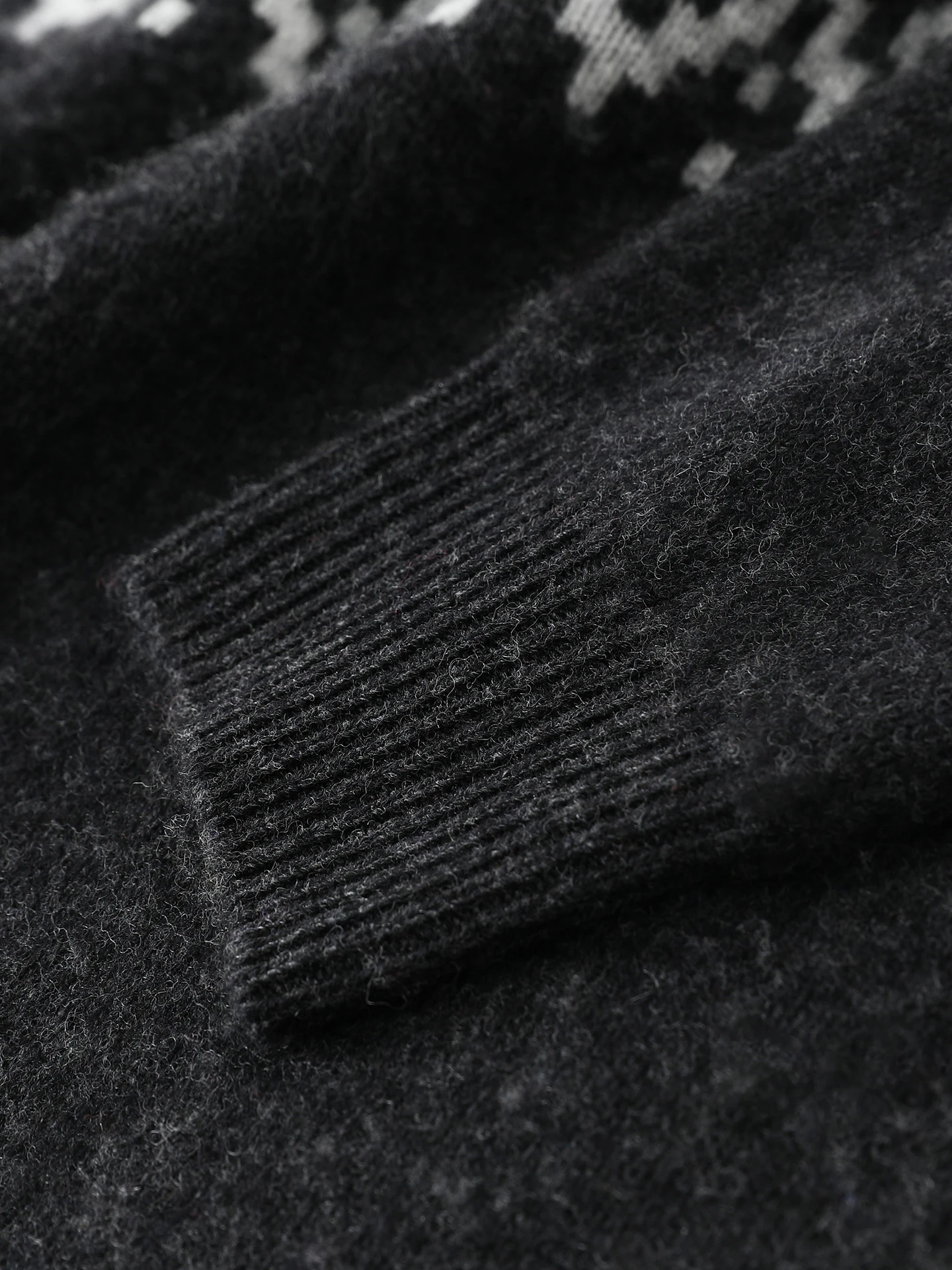 Men's 100% Merino Wool Pullover Sweater O-neck Fair Isle Jacquard Loose Casual Knitwear Long Sleeve Cashmere Tops Autumn Winter