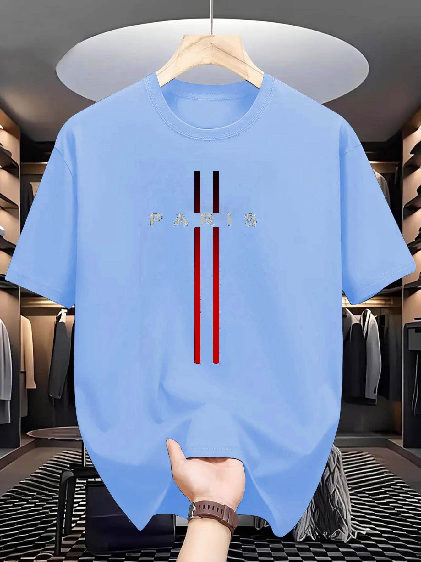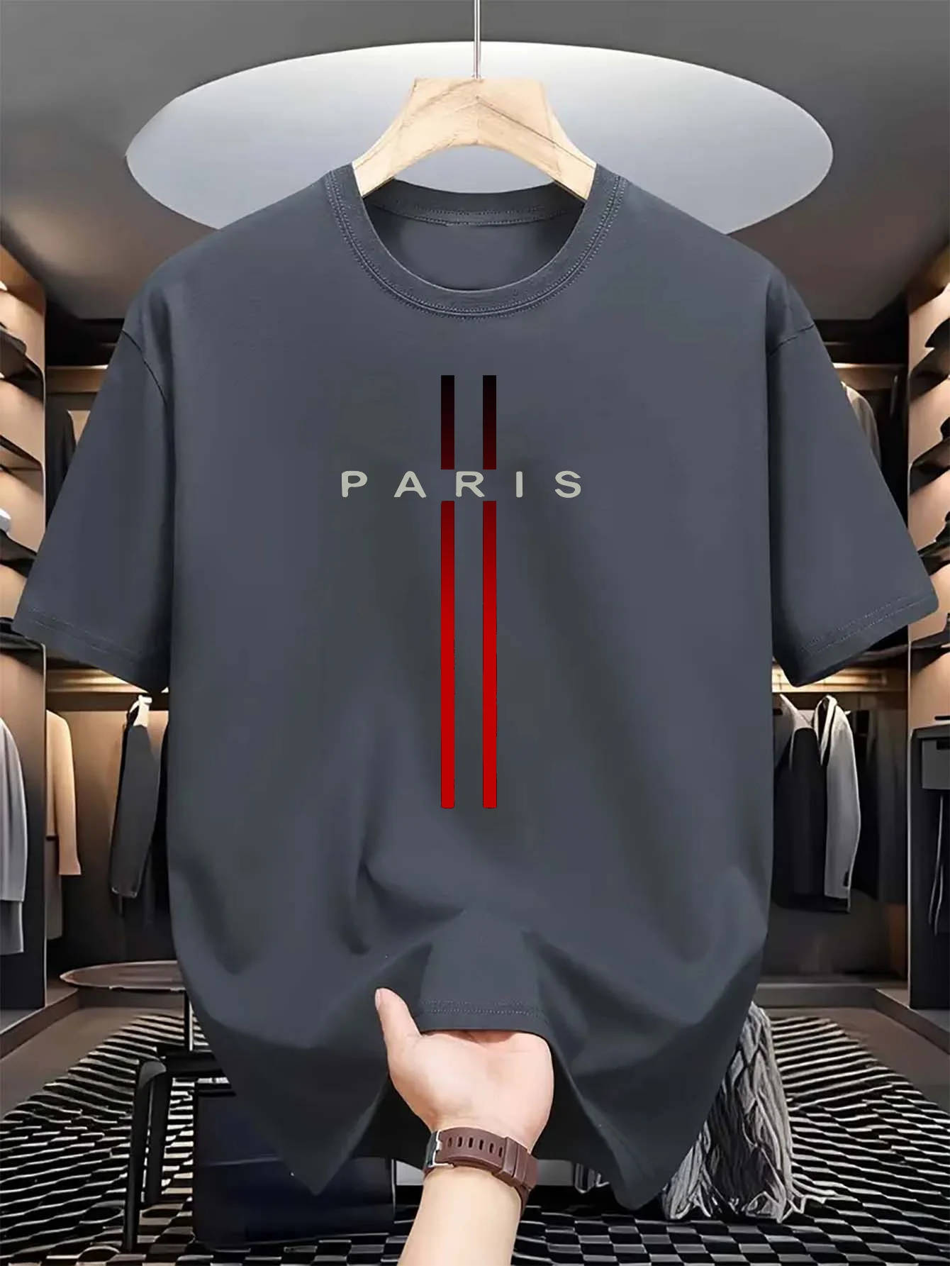 Men's 100% pure cotton summer casual loose fashion Paris letter printed comfortable round neck short sleeved T-shirt top
