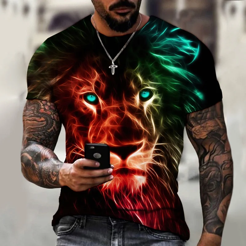 Harajuku Men's 3D Shirt Animal Lion Print New Fashionable Summer Street Round Neck Casual Loose Short Sleeved Oversized T-shirt