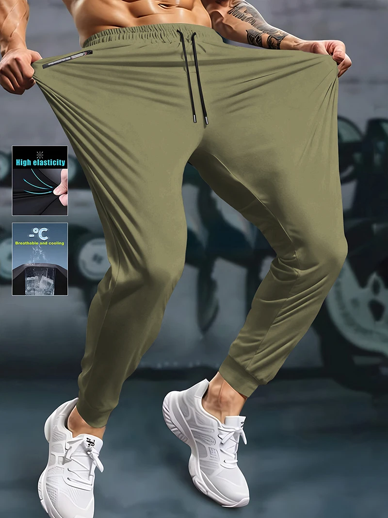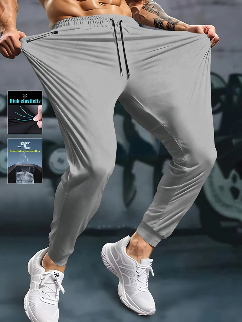 Men's Athletic Stretchy Quick Dry Pants with Zipper Pockets Lightweight Sweatpants for Outdoor Hiking Fishing Running Workout