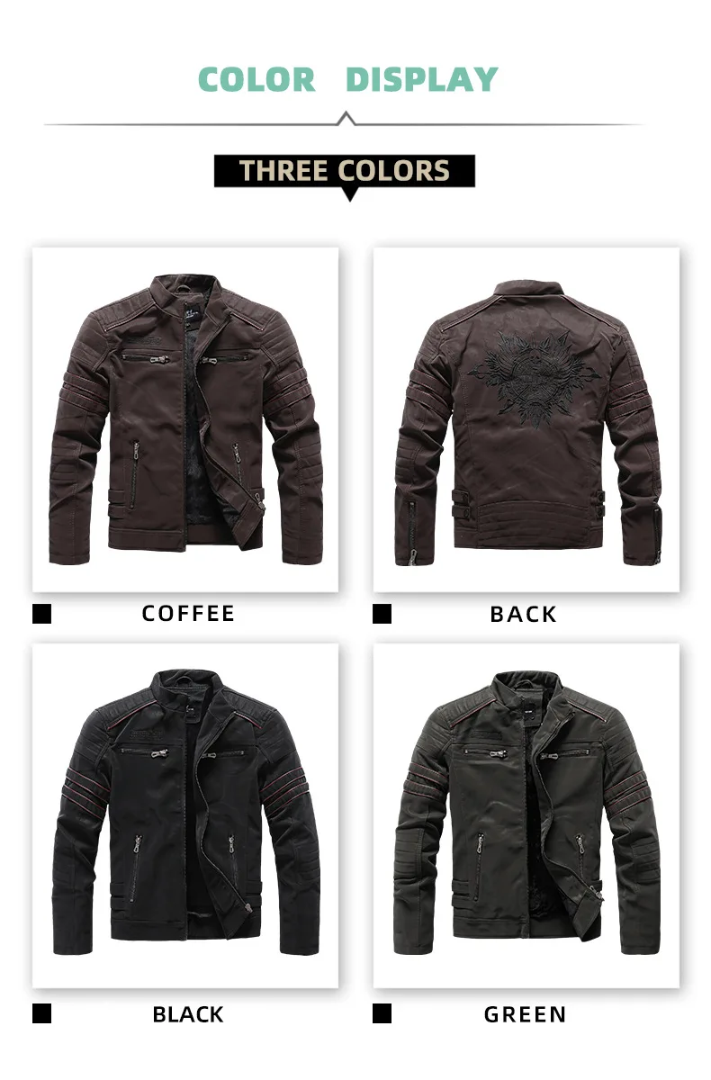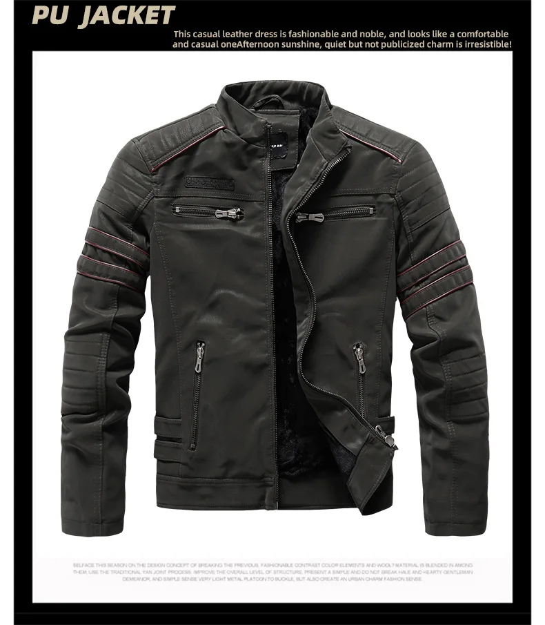 Men's autumn and winter frosted leather jacket, fashionable slim fit and brushed motorcycle fashion brand slim fit jacket