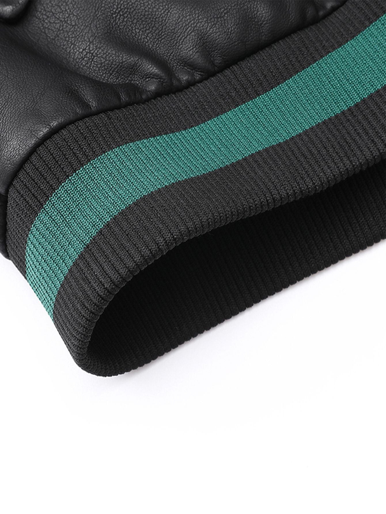 Men'S Baseball Jacket - Windproof Warm Coat with Zipper Closure, Brown & Green Accent Jacket, Non-Stretch Shell for Casual Outer