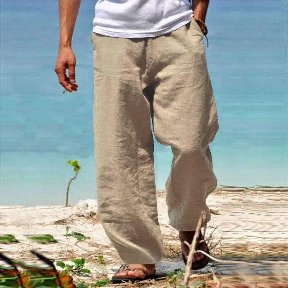 Men's Beach Pants Breathable Loose Straight Trousers Male Summer Casual Solid Color Japanese Streetwear