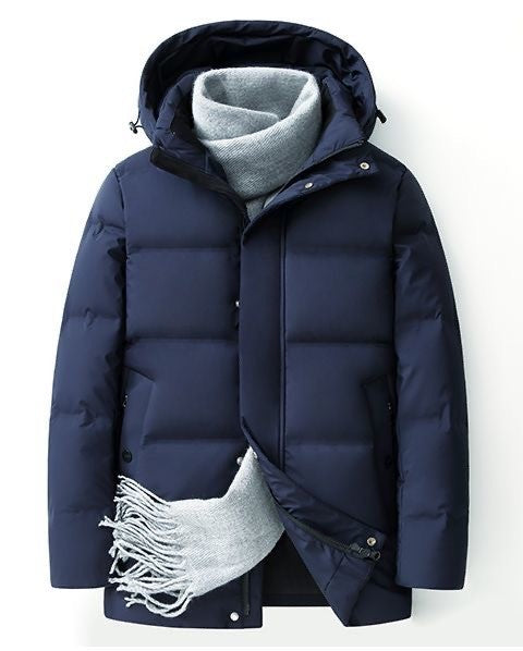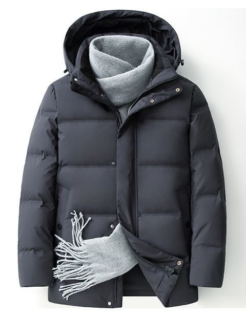 Men's Big & Tall Formal Down Overcoat - Hooded Winter Dress Coat for Professional Wear (Classic Heritage Style)
